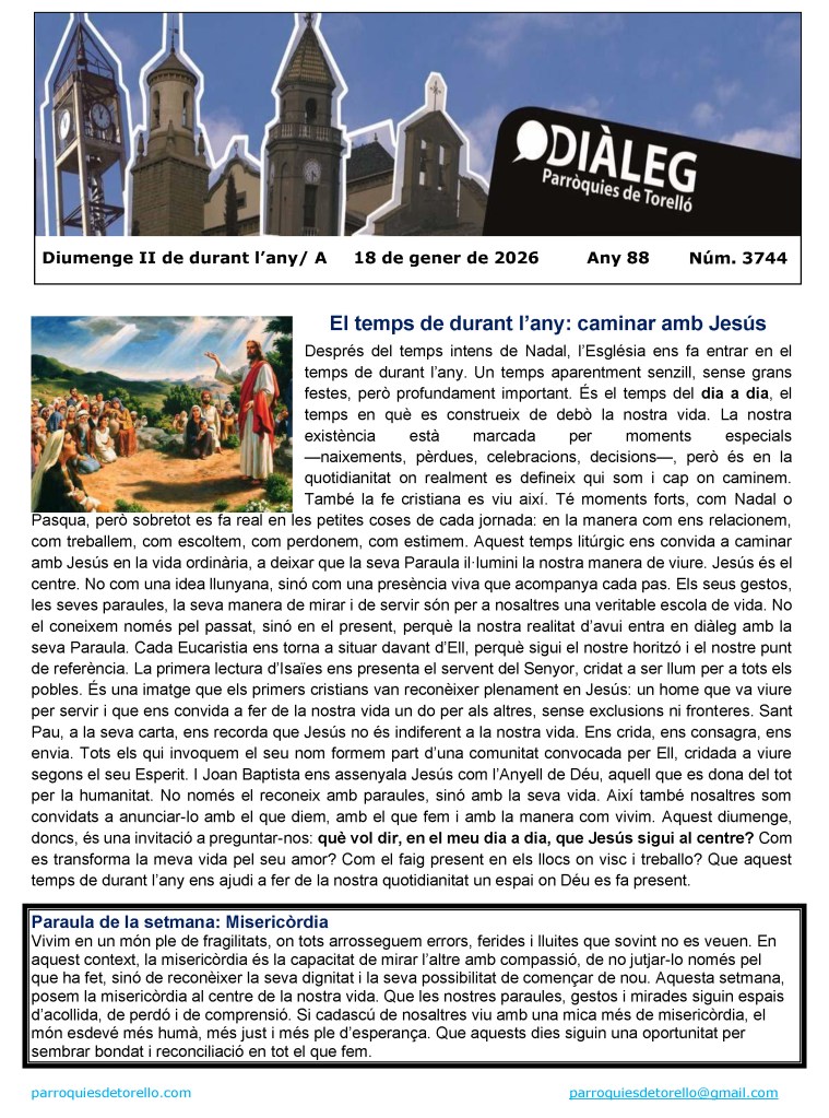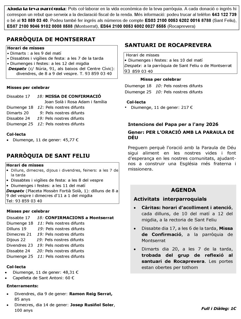 Aquesta és la distribució del servei de lectors de la missa de les 10 del matí dels diumenges al santuari de Rocaprevera, del mesos de gener a abril de 2026