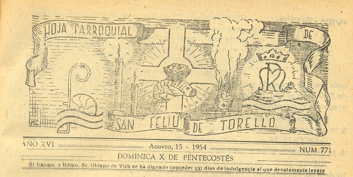 Aquí teniu la imatge de la nota d’avís que es publicava al Diàleg del 15 d’agost del 1954 anunciant la seva vinguda, amb la capçalera d’aquell mateix Diàleg.