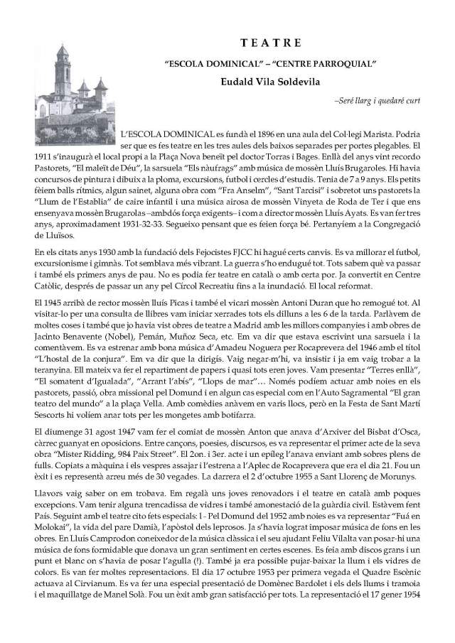 Aquest és l’article que sobre la vida del Casal es va demanar al senyor Eudald Vila Soldevila i que es va repartir el dia de la inauguració. El teniu en imatge i en arxiu pdf.