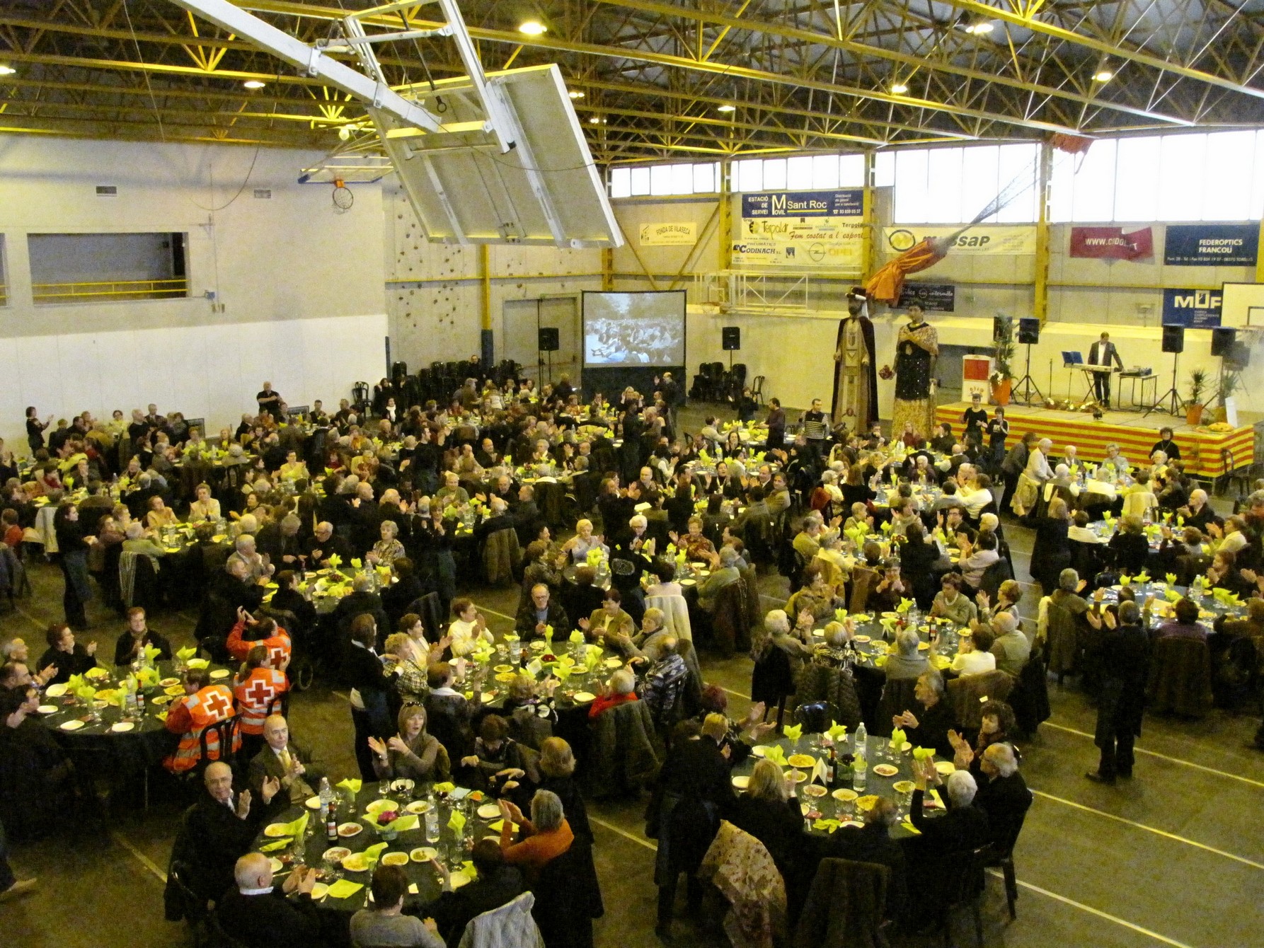 Després precedits pels gegants de Torelló es va anar al Pavelló Municipal d’Esports i es va compartir el dinar. Més de setanta voluntaris ho van fer possible, tant en el muntatge previ, ja el dia abans, com servint les taules, com després tornant-ho a deixar tot tal com l’ajuntament ens ho havia cedit. Cal agrair totes les facilitats que se’ns van donar.