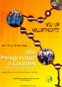 L’Hospitalitat de la Mare de Déu de Lurdes de les diòcesis de Vic i de Solsona, convoca com cada any el Pelegrinatge a Lurdes amb malalts i minusvàlids que tindrà lloc del 12 al 16 de maig. Serà ja el 45è. Pelegrinatge que s’organitza conjuntament