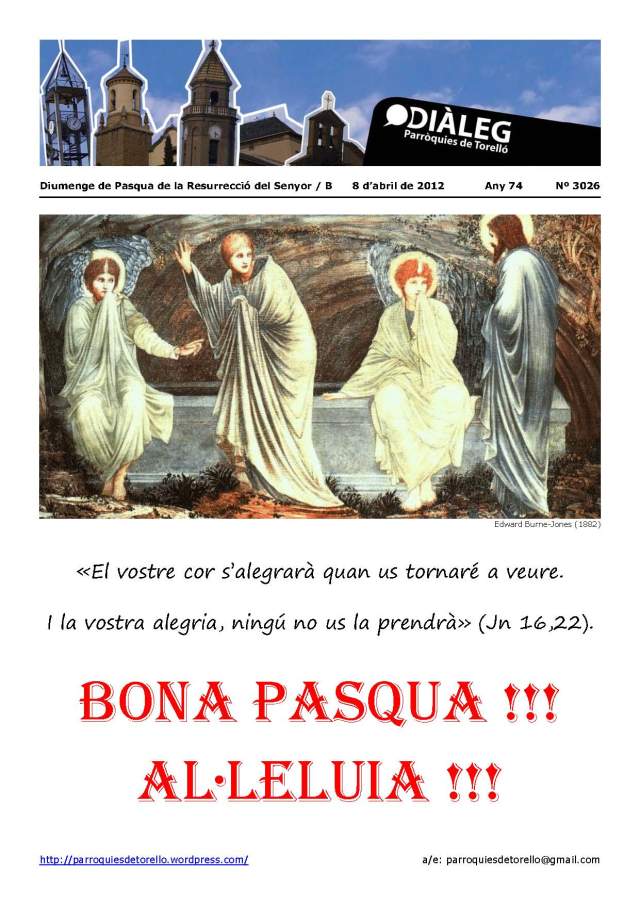 Aquest és el Diàleg del diumenge, dia 8 d’abril del 2012, diumenge de Pasqua. I aquesta és la versió en pdf perquè us el pugueu descarregar si ho voleu.