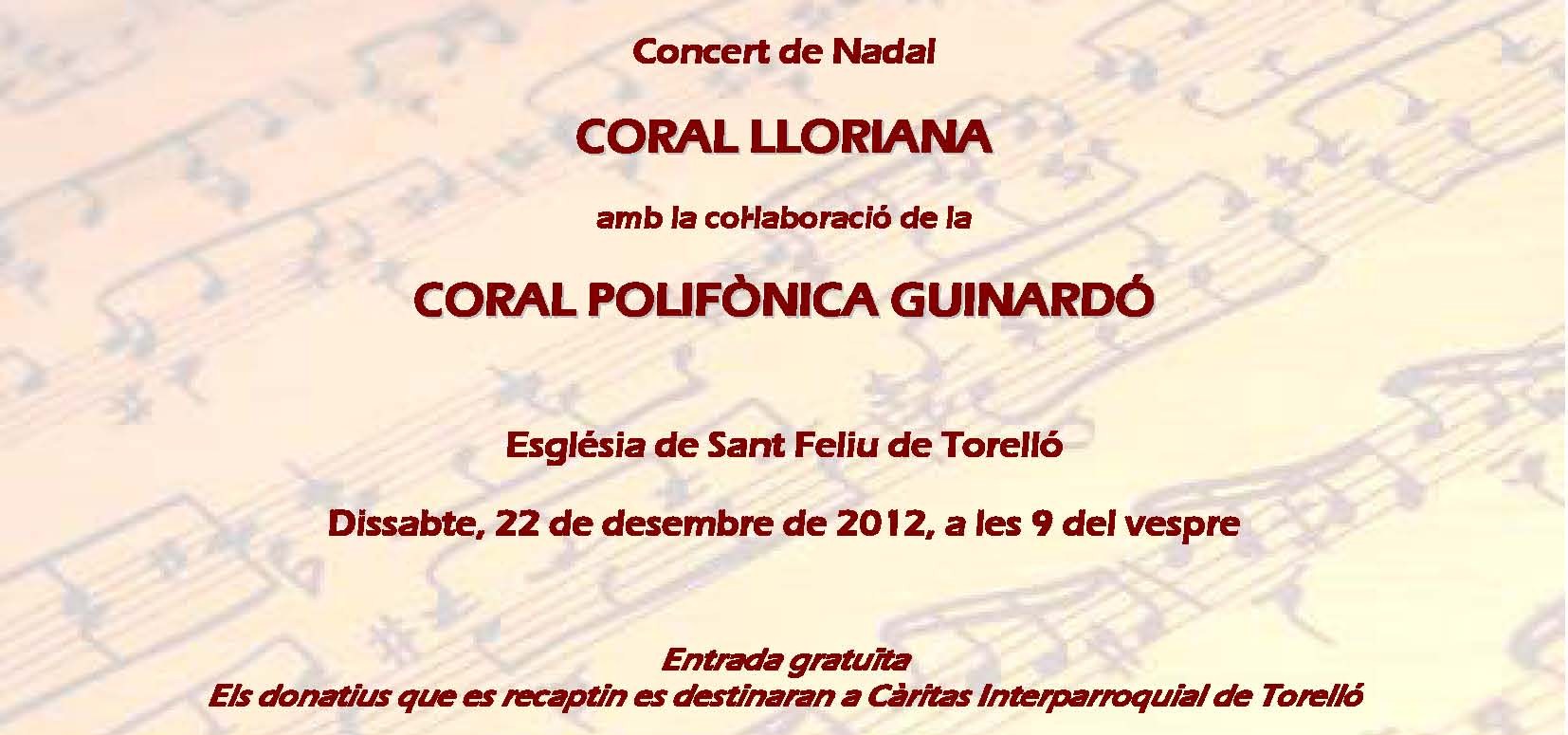Aquest és el cartell anunciador del Concert, juntament amb el programa de mà, que farà la Coral Lloriana i els beneficis del qual aniran destinats a Càritas Interparroquial.