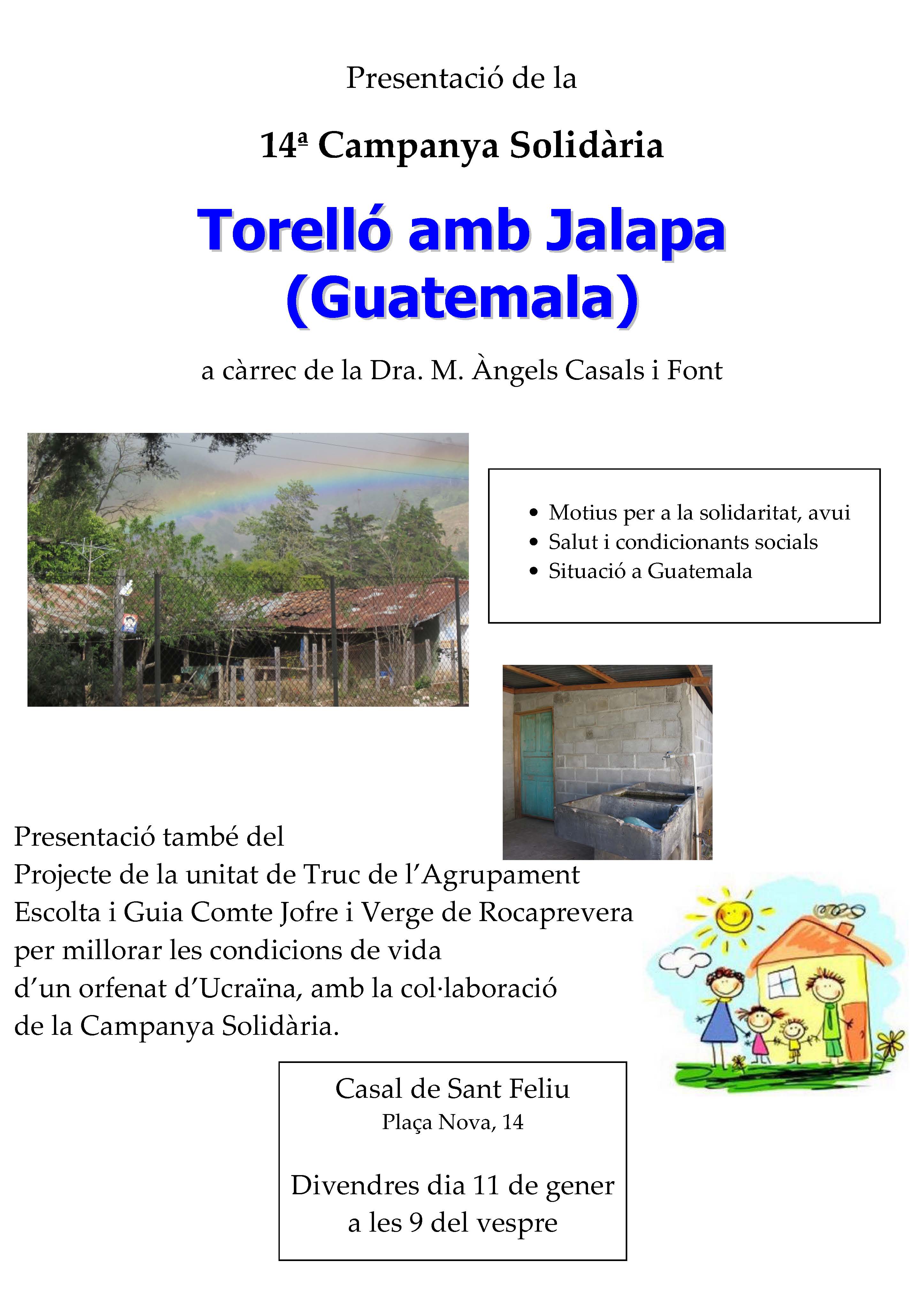 Es va començar l’acte explicant com aquest any l’equip promotor de la Campanya havia decidit que tingués un doble objectiu. Primer destinat a col·laborar en l’acció de la torellonenca germana Conxita Basagaña que actualment hi està treballant, i en concret per ajudar a l’habilitació d’un dispensari en aquella zona tan empobrida de Guatemala. I també col·laborarem amb la unitat de Truc dels escoltes de Torelló en el projecte de millorar les condicions de vida dels infants acollits en un orfenat d’Ucraïna.
