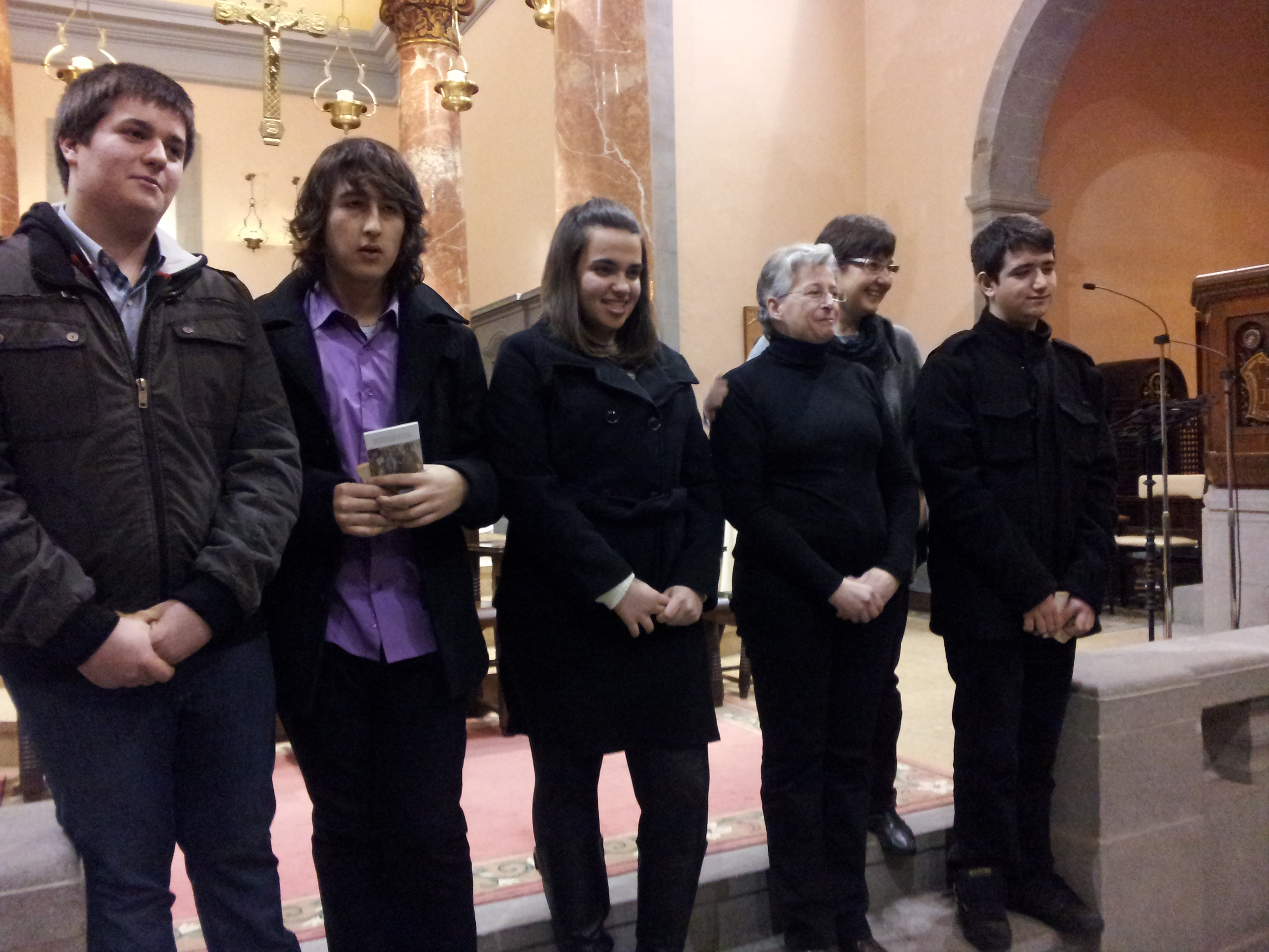 Dissabte, dia 12 de gener de 2013, festa del Baptisme del senyor, en la celebració de l’Eucaristia de la parròquia de Sant Feliu van rebre el sagrament de la Confirmació de mans del nostre bisbe, Mons. Romà Casanova i Casanova, aquests quatre joves de les nostres parròquies: