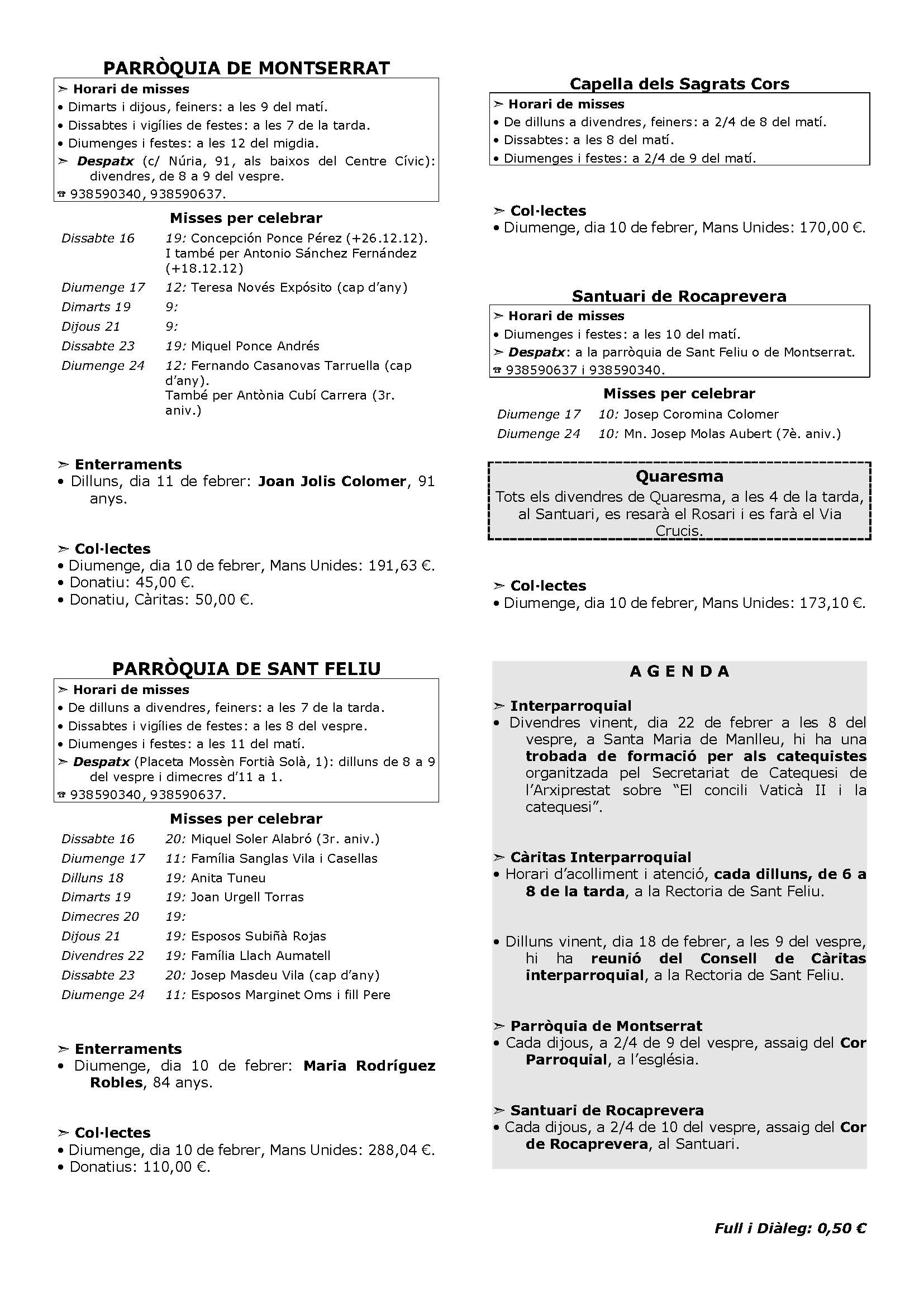- A les 11h30: Reunió d'arxiprestat a Sant Manlleu 12 febrer 2026
