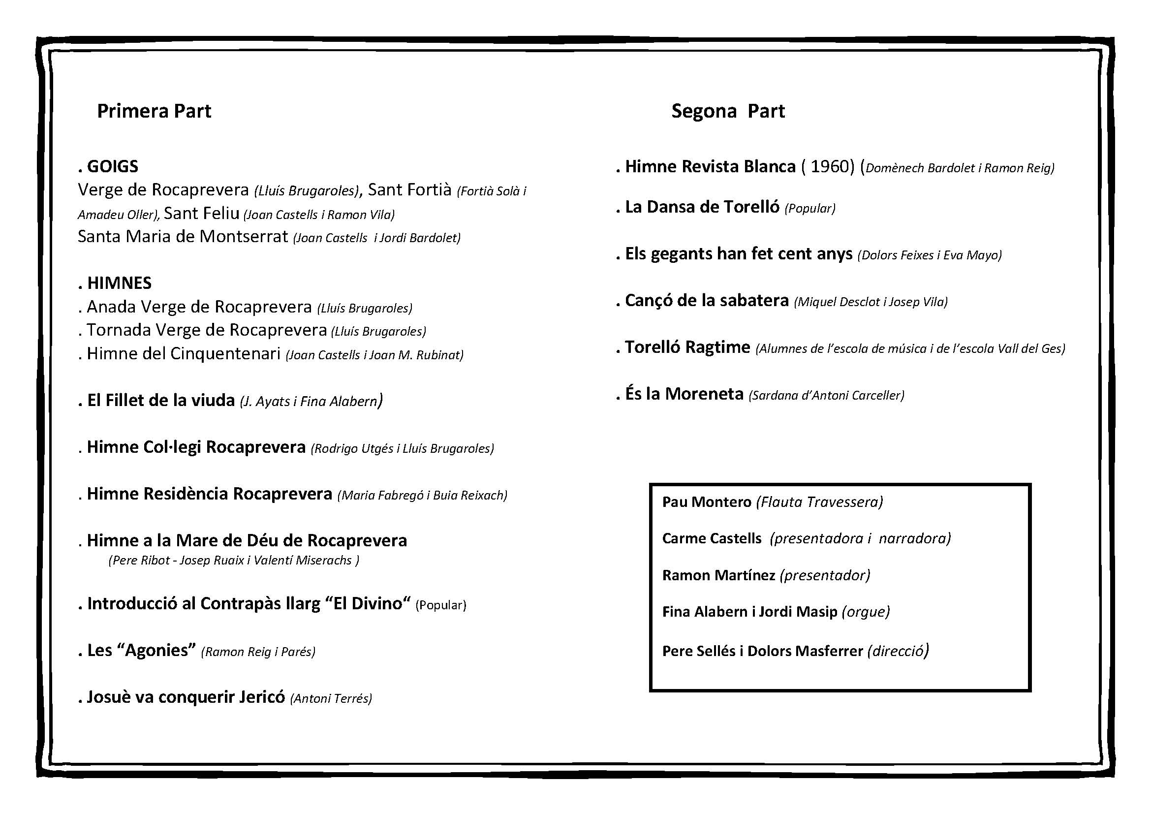 Aquí teniu primer el cartell anunciador i després el programa de ma, amb el detall de les cançons que es canten.