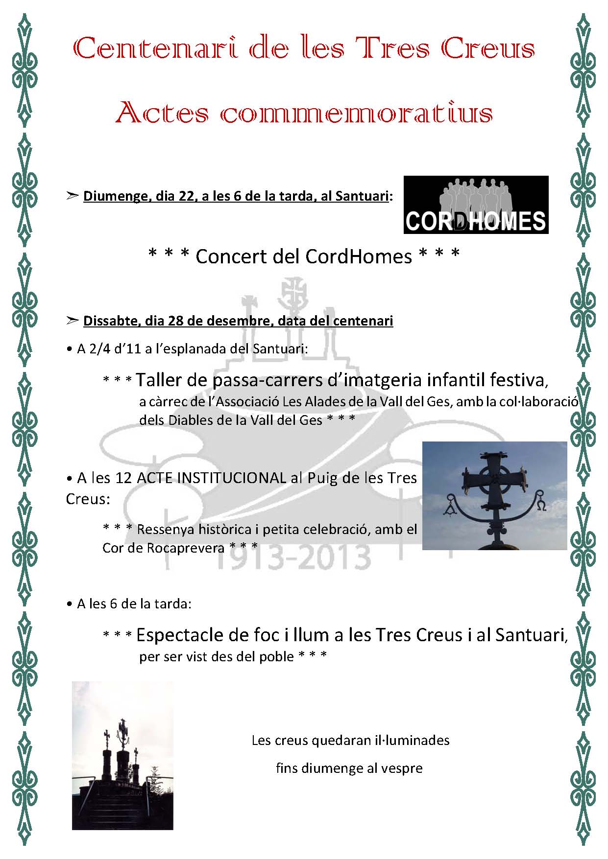El dia 28 de desembre de 2013 es compleixen 100 anys exactes de les Tres Creus del Puig.