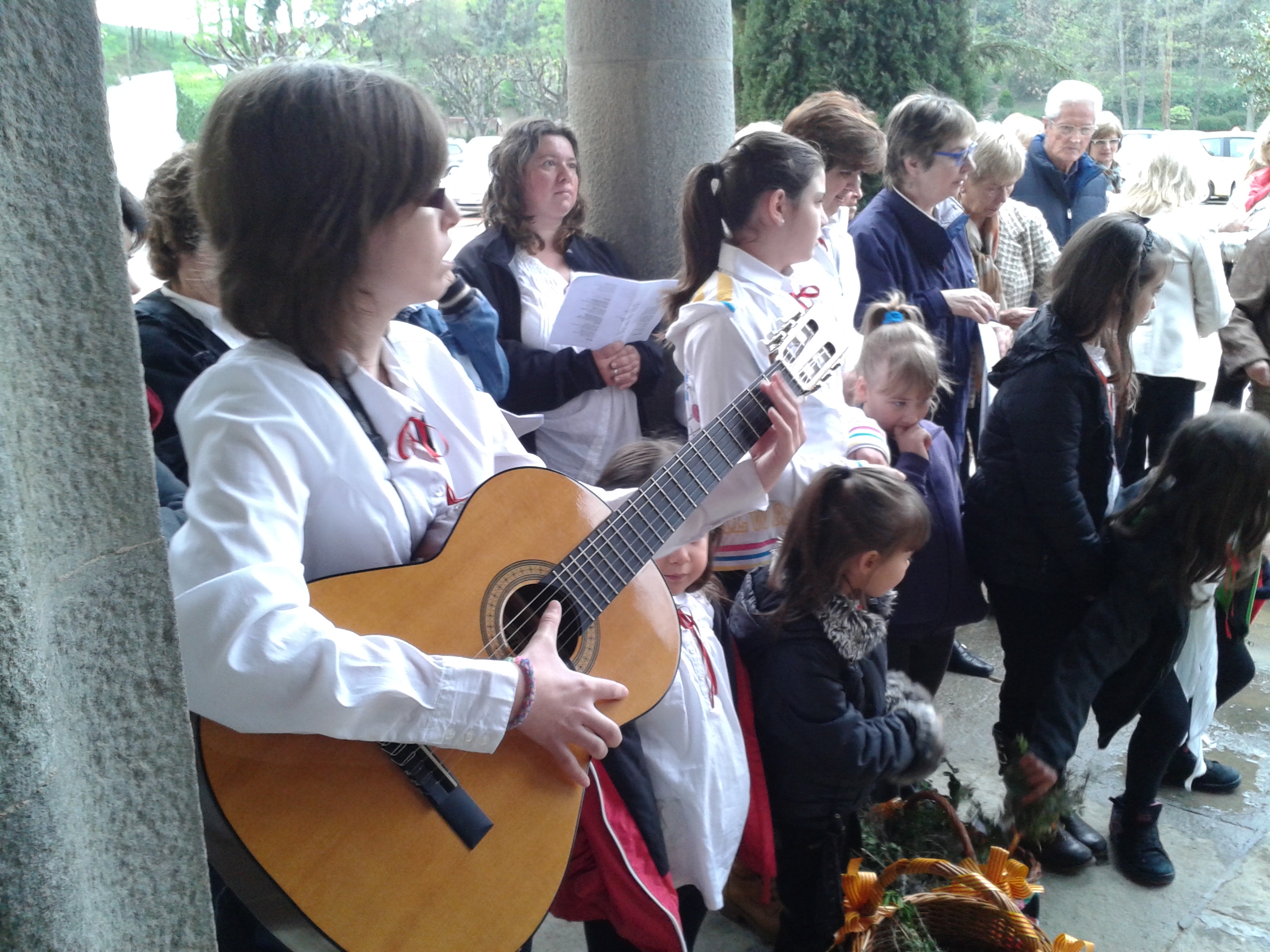 Dissortadament, la pluja va fer que a l’església de Sant Feliu s’hagués de cantar al fons de l’església. Però no hi fa res! Es va cantar la joia de la Pasqua!