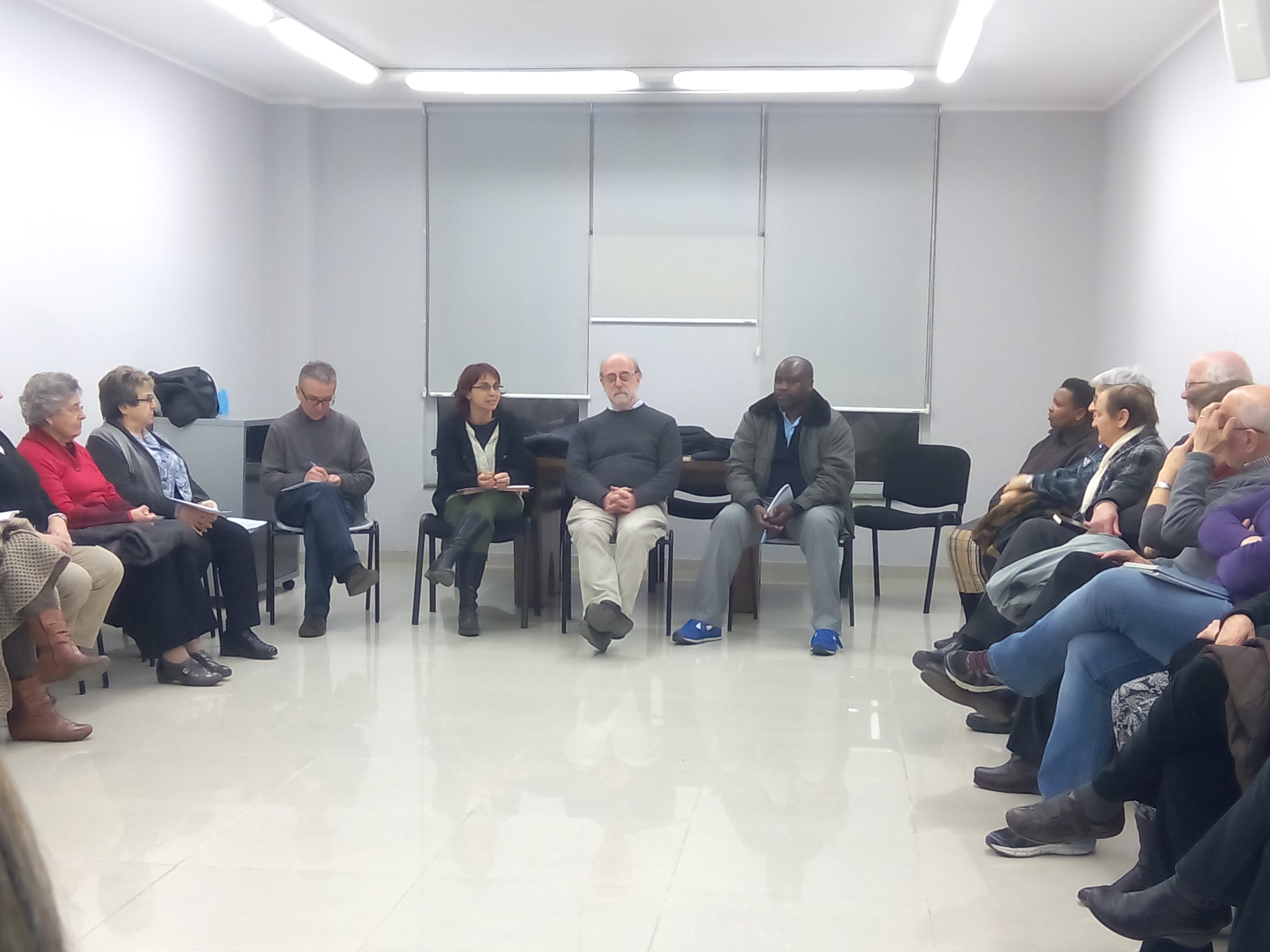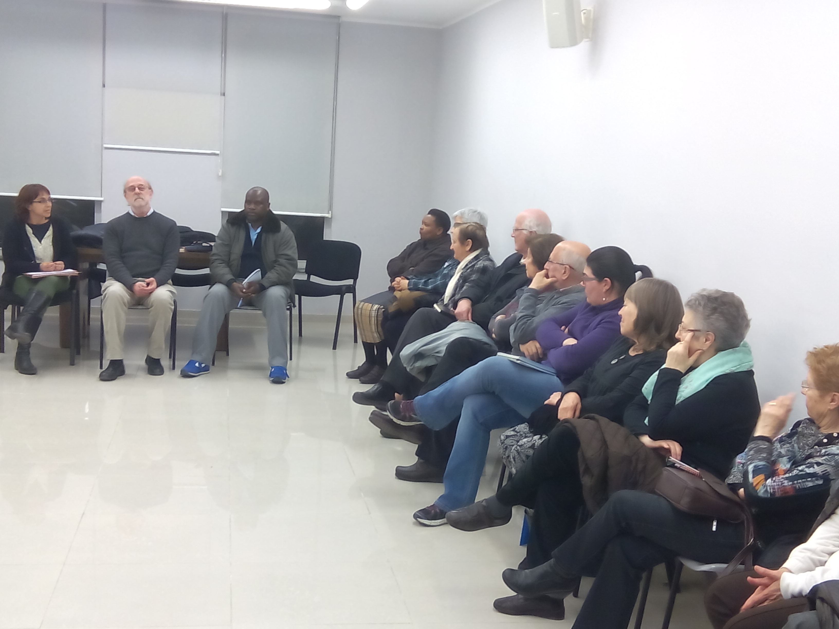 La trobada la va conduir el P. Joan Soler, claretià, de Vic, amb el títol “La mirada que dignifica”. Hi varen assistir unes quaranta persones. Deixem constància del cartell que ho anunciava i d’algunes fotos de la trobada.