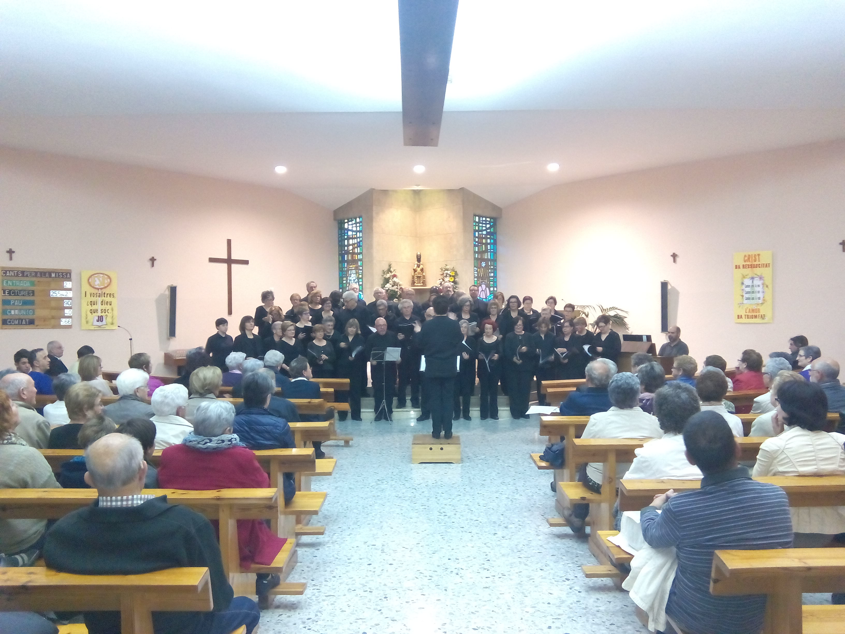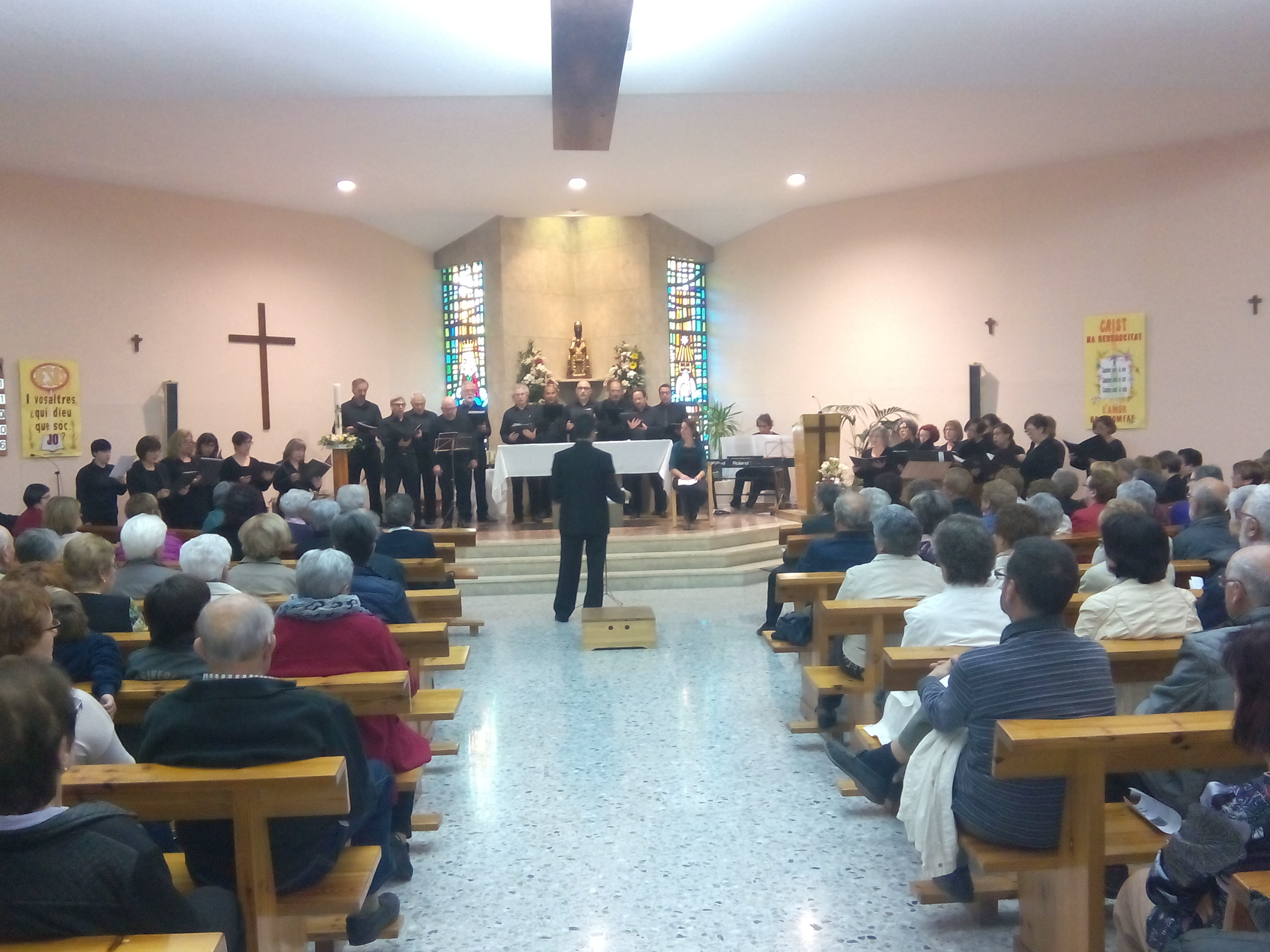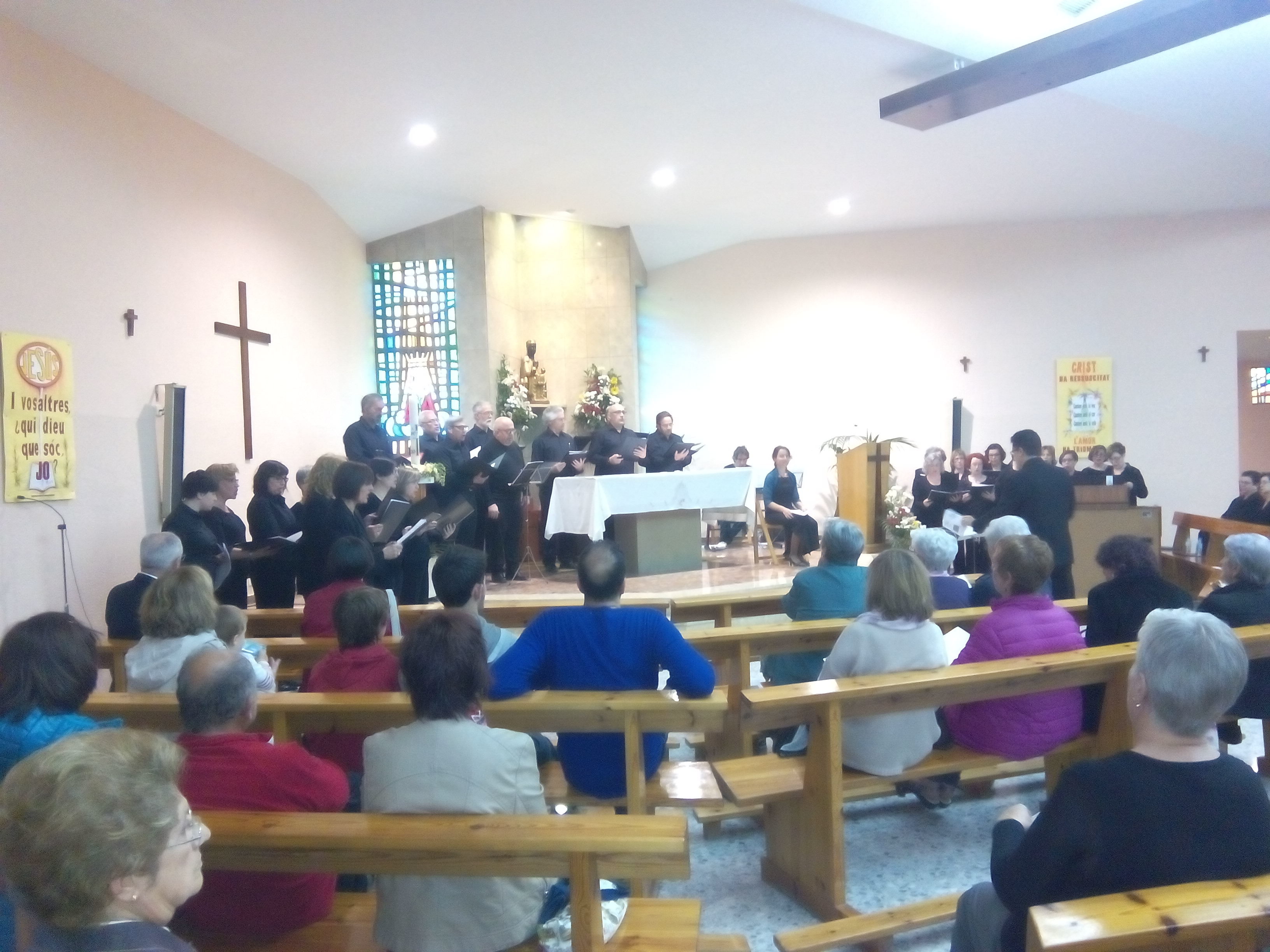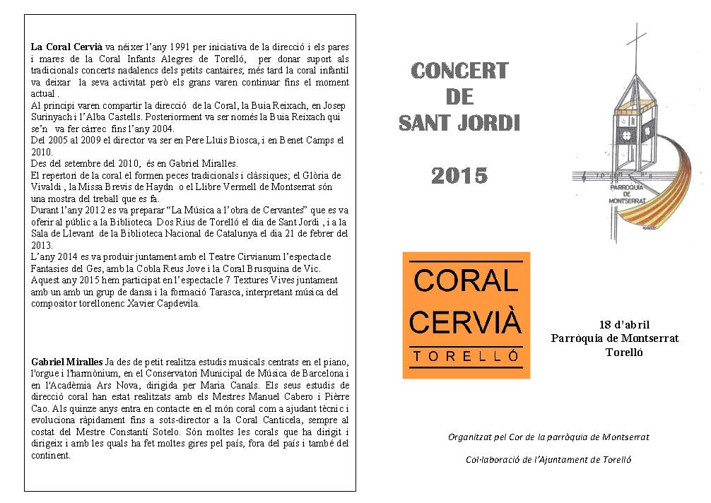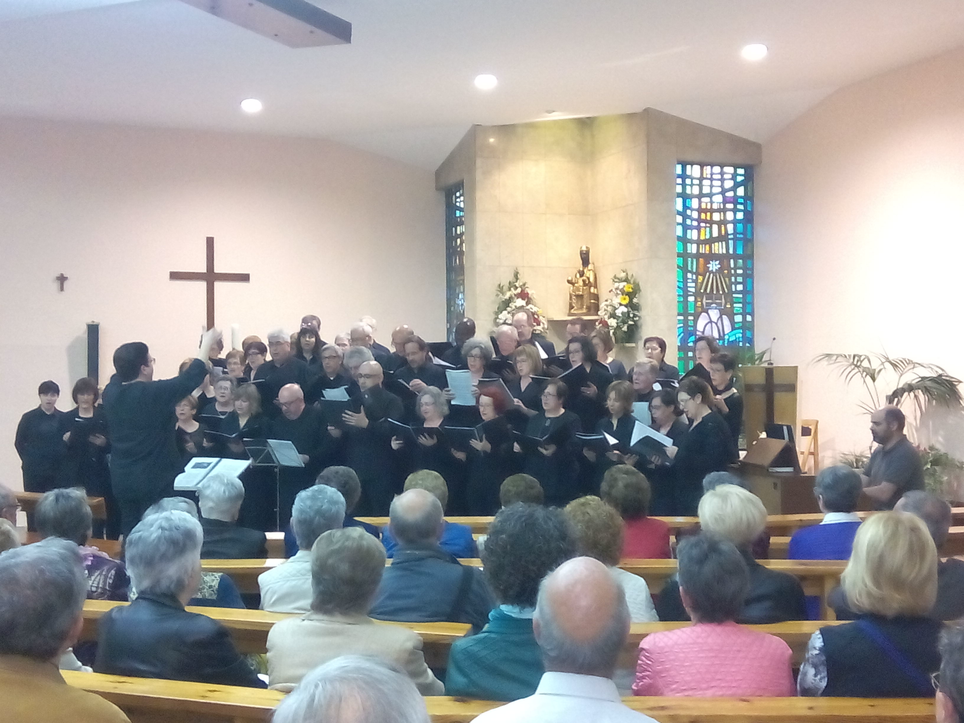 Cada any el Cor de la parròquia de Montserrat organitza un concert per Sant Jordi. Aquest any va ser el dissabte, dia 18 d’abril, a la mateixa església parroquial, després de la missa anticipada, a 3/4 de 8 del vespre. Va ser extraordinari. Hi va intervenir la Coral Cervià en la primera part, i de conjunt amb el Cor de la parròquia en la segona. Aquí teniu el programa de mà en pdf i en imatge.