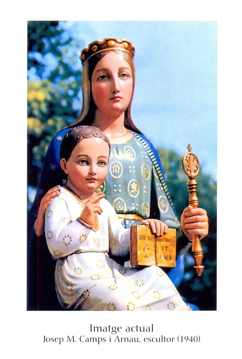 Aquest any s’esqueia que es complien 75 anys de la imatge actual de la Mare de Déu, obra de Josep M. Camps Arnau, després que l’anterior havia estat destruïda el 1936. El logo n’indicava el disseny, i la postal de record de l’Aplec ho recordava palesament. Heus-la ací.