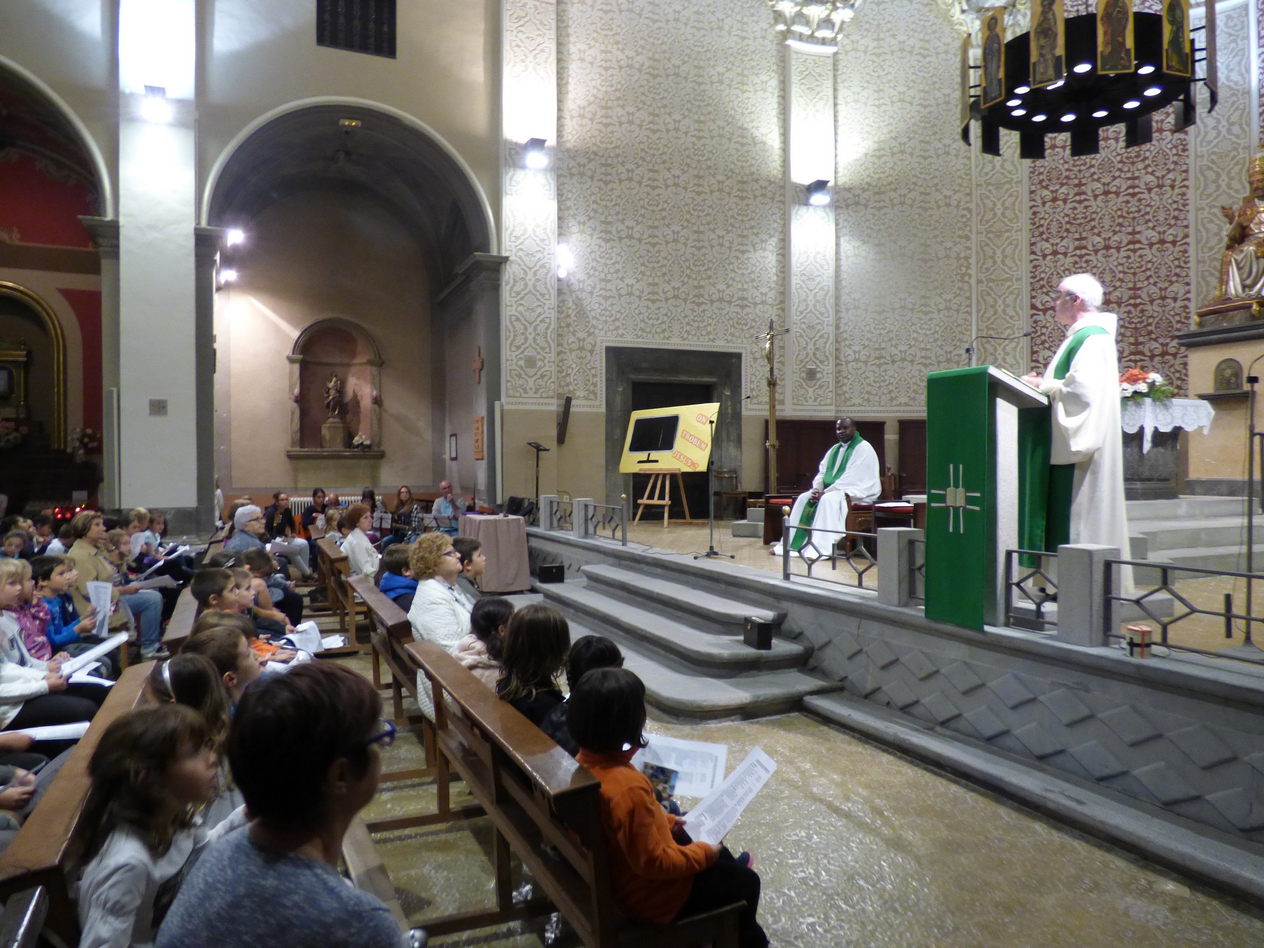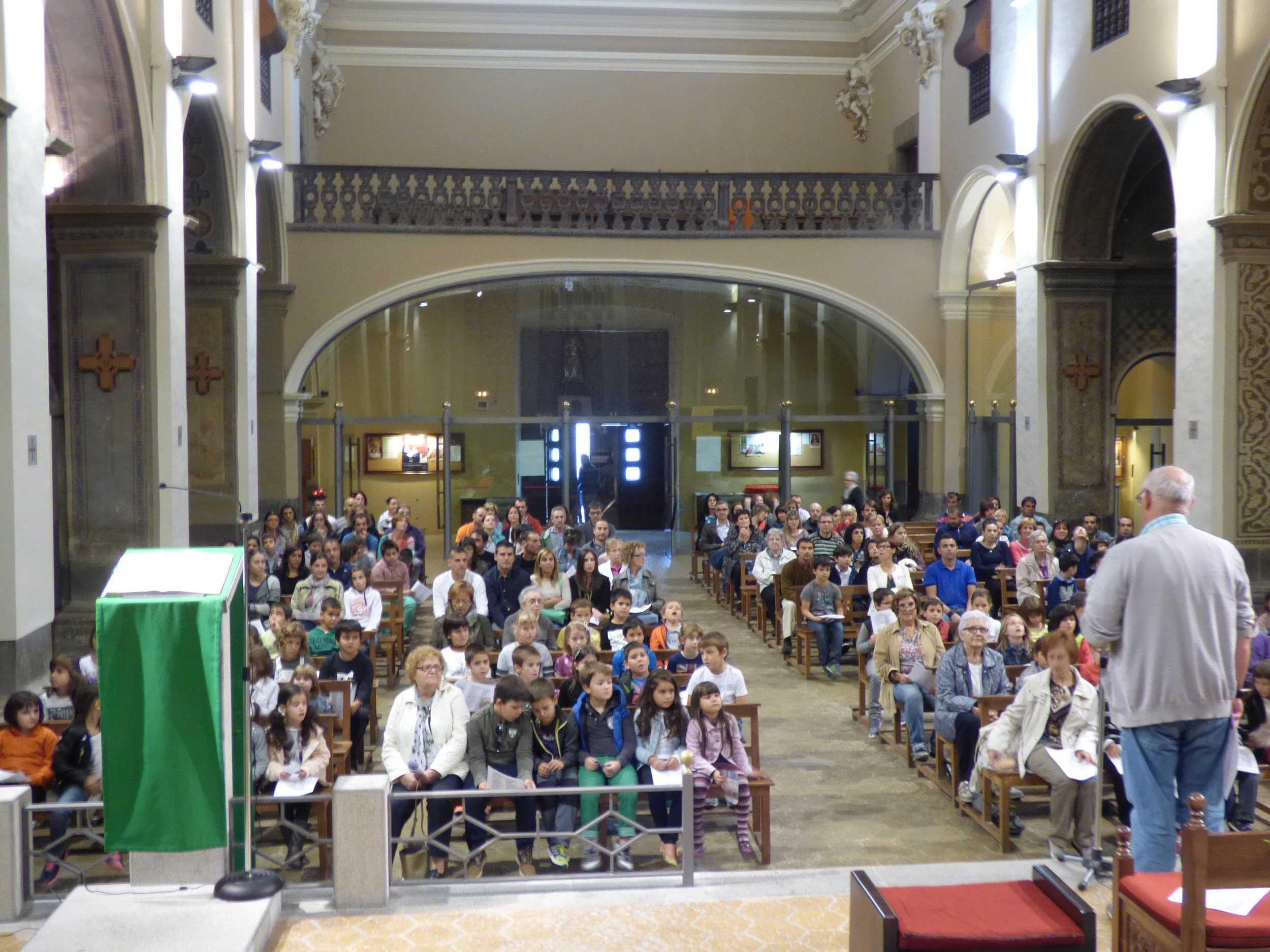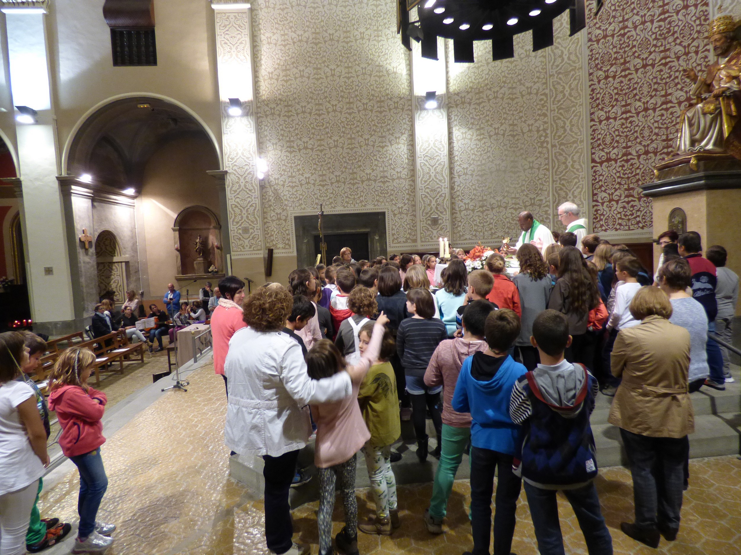 Fou una Missa especial. Ens hi trobàvem tots els nens i nenes de la Catequesi de les parròquies de Sant Vicenç de Torelló, de Sant Pere de Torelló, de Sant Feliu i de Montserrat de Torelló, a l’església de la parròquia de Sant Pere per a celebrar la missa familiar de començament de curs, del mes d’octubre, cosa que vol dir, que va anar precedida de la xerrada de formació amb els pares i la trobada de tots els nens i nenes. Els dos rectors concelebraren.