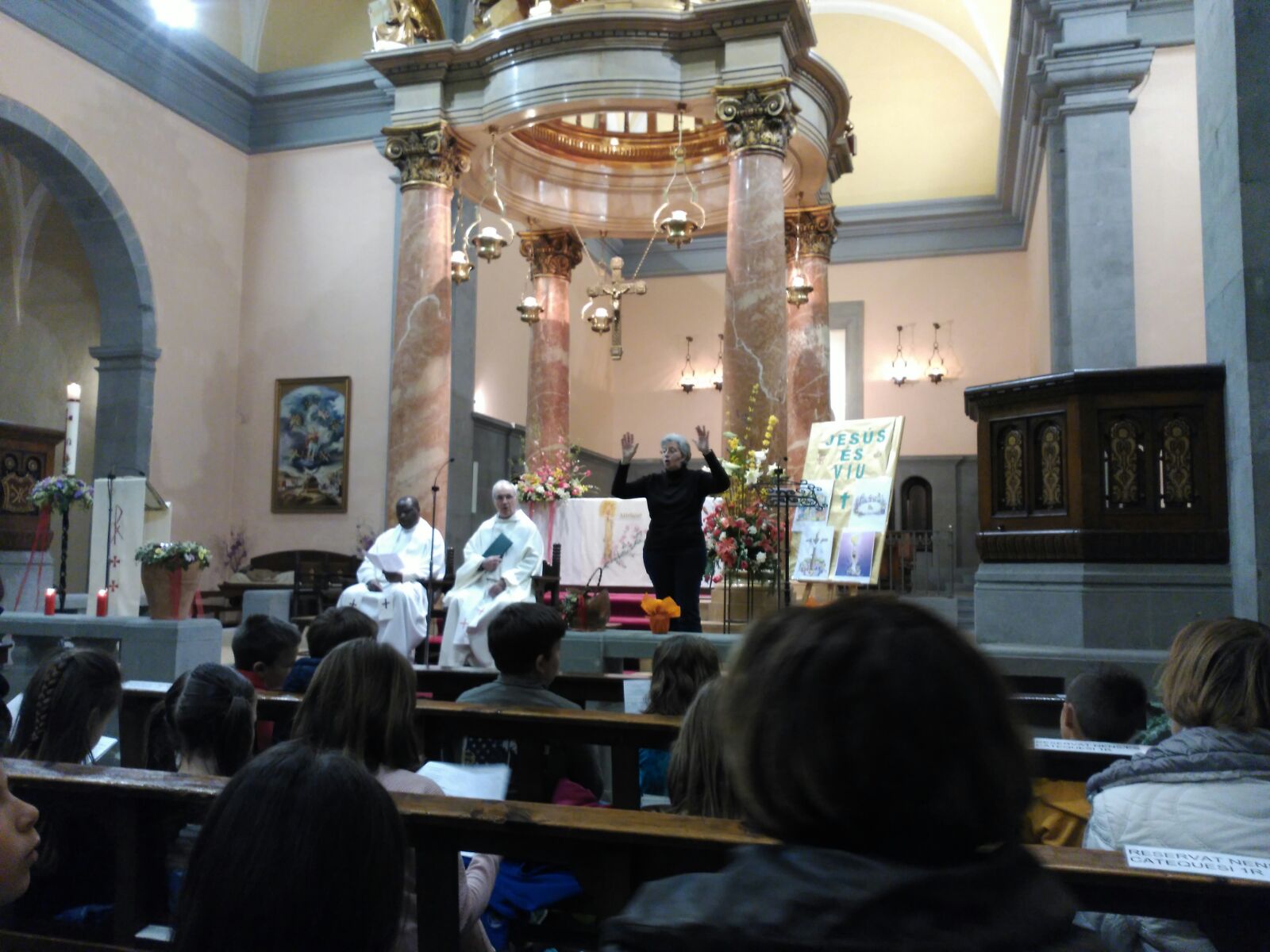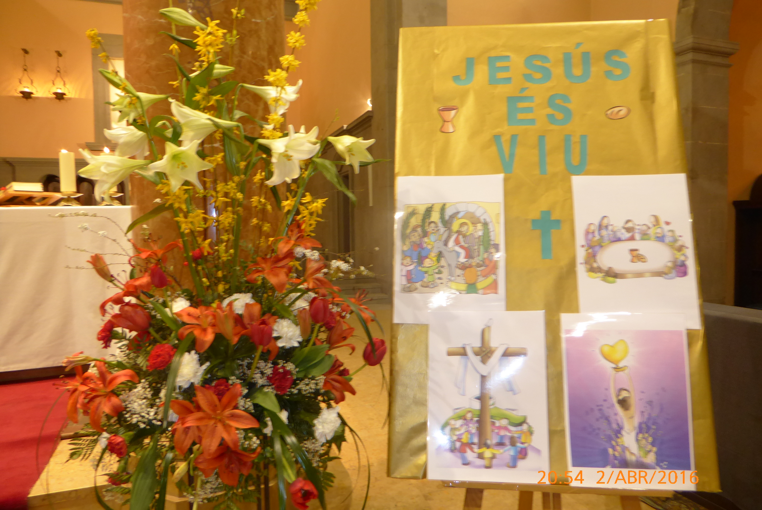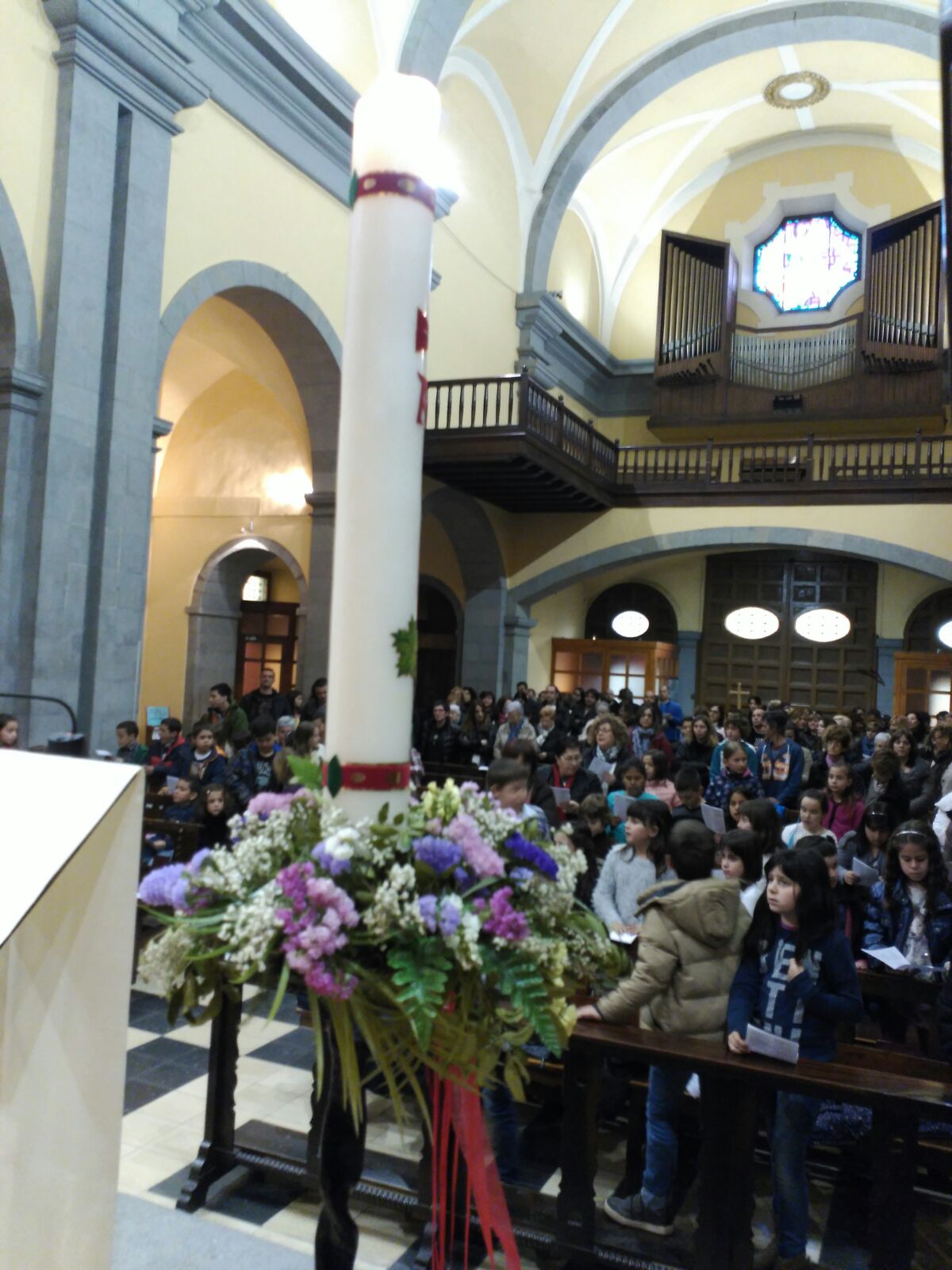 Era la tercera ocasió en aquest curs en què ens trobàvem tots els nens i nenes de la Catequesi de les parròquies de Sant Vicenç de Torelló, de Sant Pere de Torelló, de Montserrat i de Sant Feliu de Torelló, a l’església d’aquesta darrera parròquia, per a celebrar la missa familiar en ocasió de la Pasqua. Els dos rectors concelebraren. El grup de guitarres acompanyà els cants de la missa.