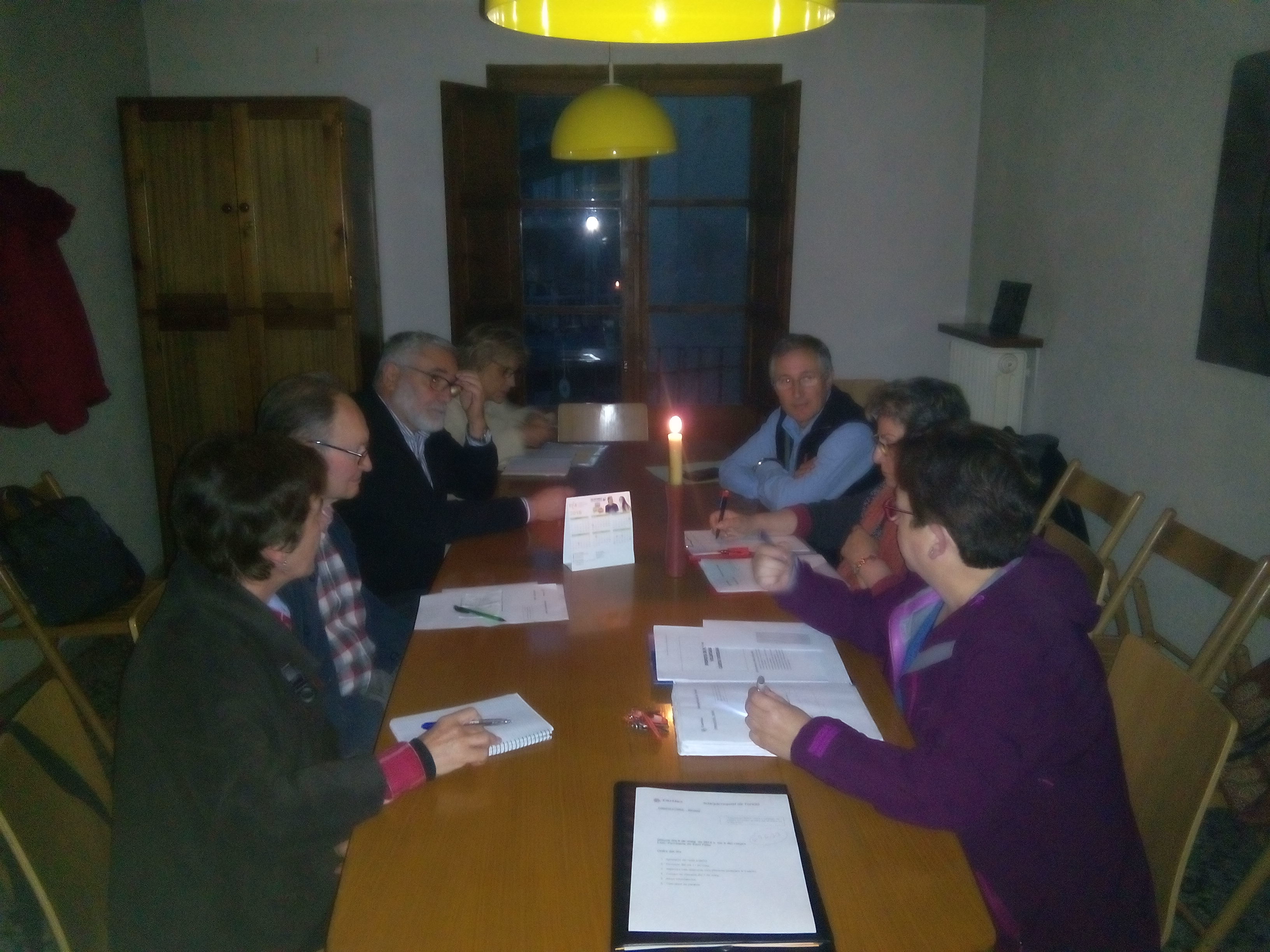 La reunió del dilluns, dia 9 de maig va tenir la característica que es va a fer a la llum d’una espelma perquè estàvem sense llum a una part del poble per culpa segurament del mal temps.