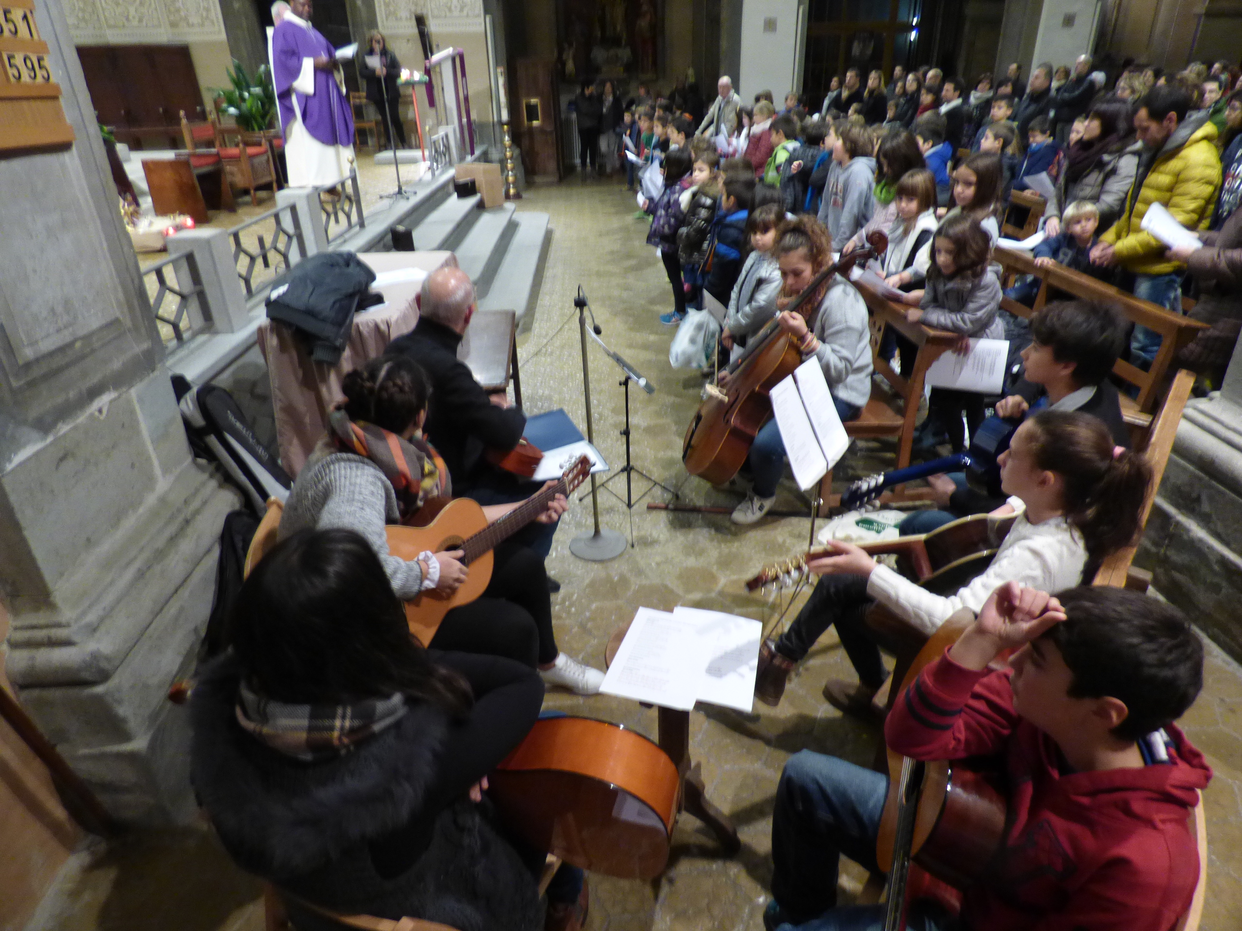 Era la primera ocasió en aquest curs en què ens trobàvem tots els nens i nenes de la Catequesi de les parròquies de Sant Vicenç de Torelló, de Sant Pere de Torelló, de Sant Feliu i de Montserrat de Torelló, a l’església de Sant Pere, per a celebrar la missa familiar. Els dos rectors concelebraren. Es va fer un recapte de productes d’higiene i de neteja, a més d’aliments per al Rebost Solidari.