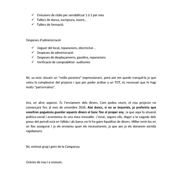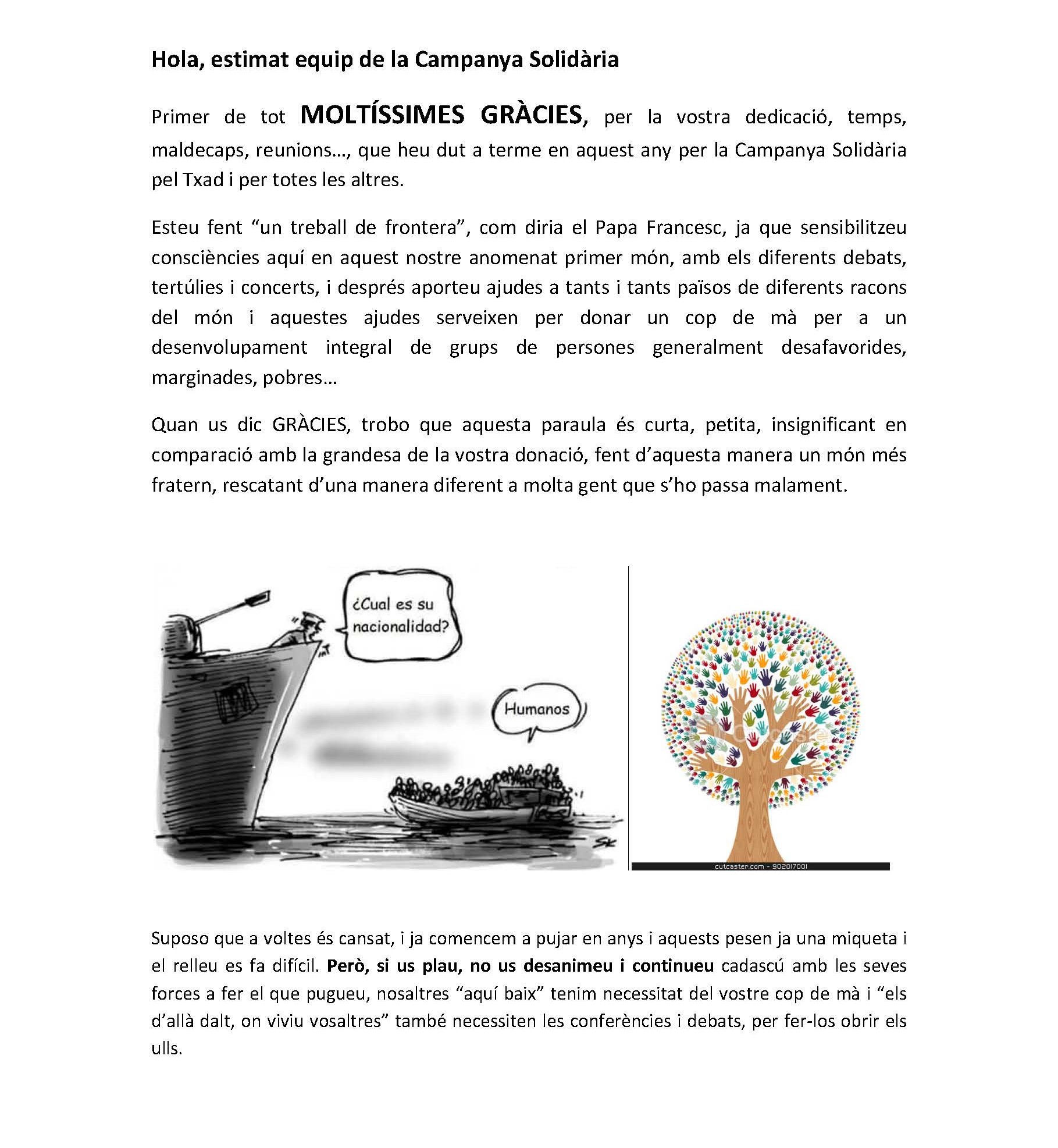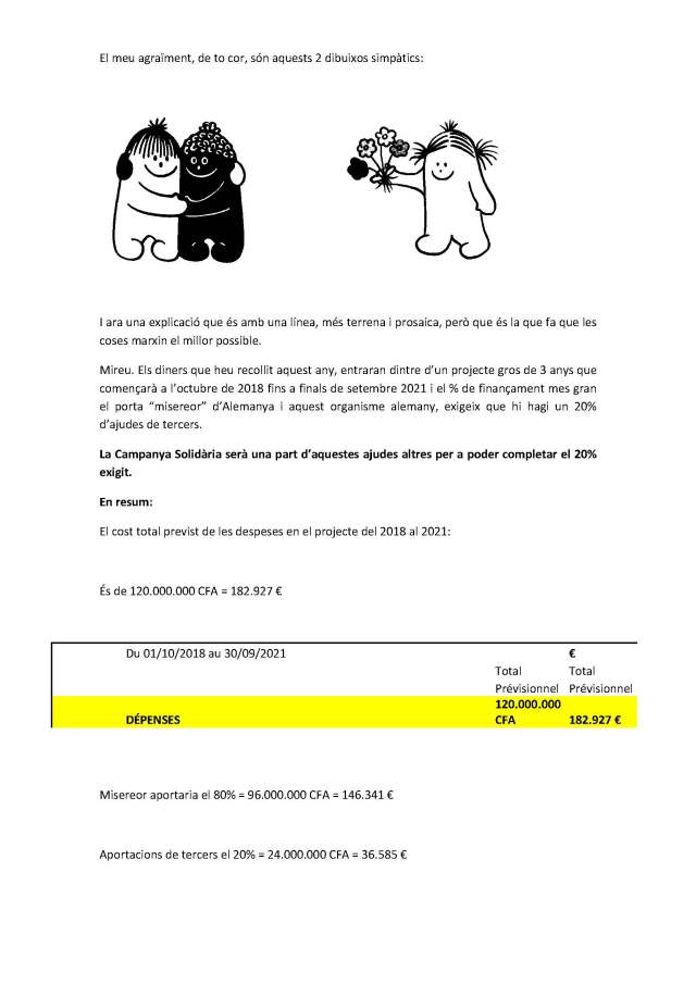 La germana Maria Antònia Vilar, la Minto, ens ha fet arribar aquesta carta d’agraïment per la 18ª Campanya Solidària que reproduïm tot seguit per les explicacions que dóna i la claredat amb què ho fa.