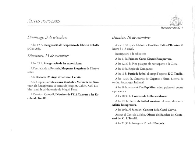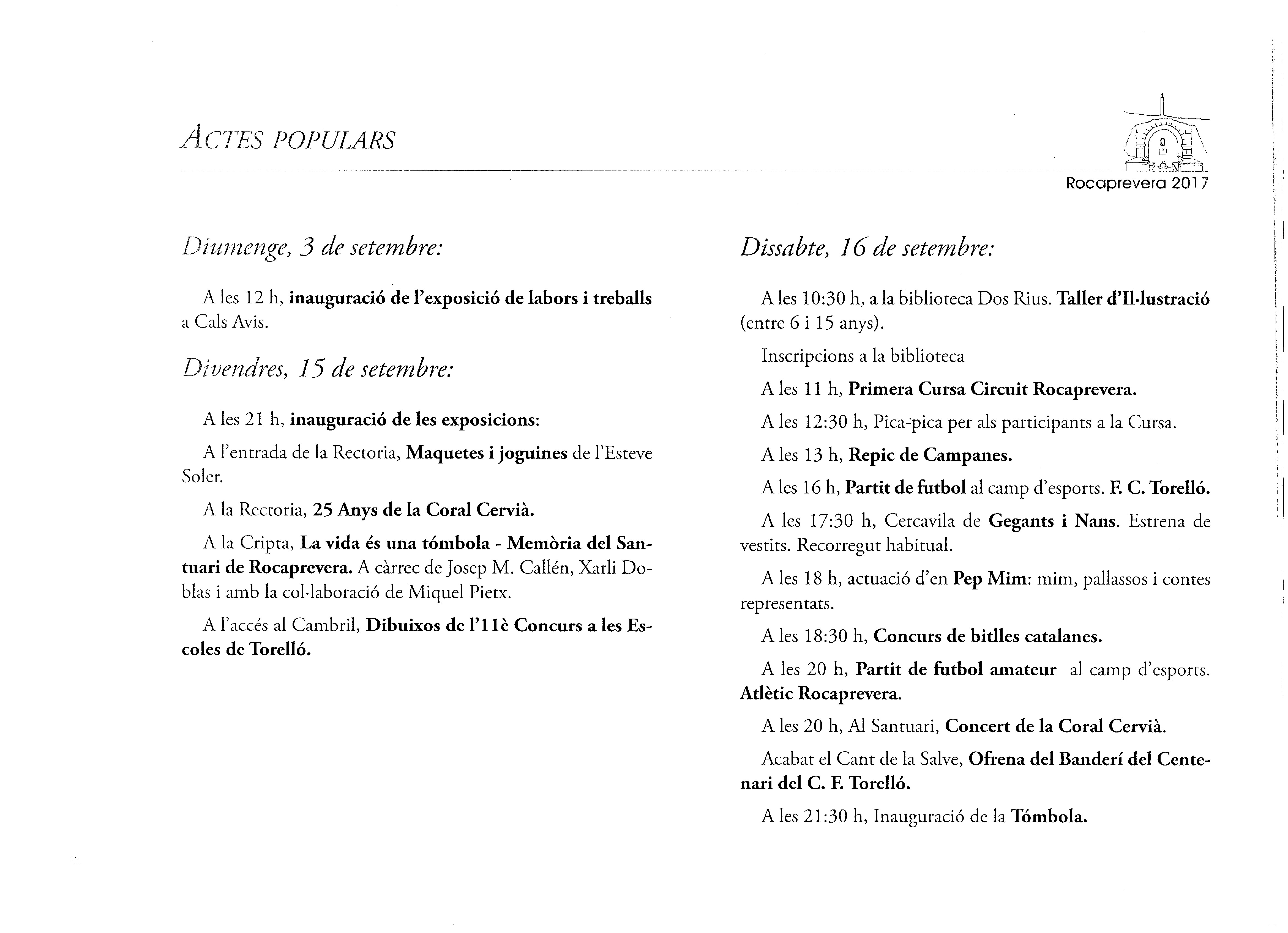 ATENCIÓ: aquest any tampoc no es reparteix per les cases el programa de l’Aplec. Es trobarà als forns de pa, a les llibreries, farmàcies… i a les esglésies.