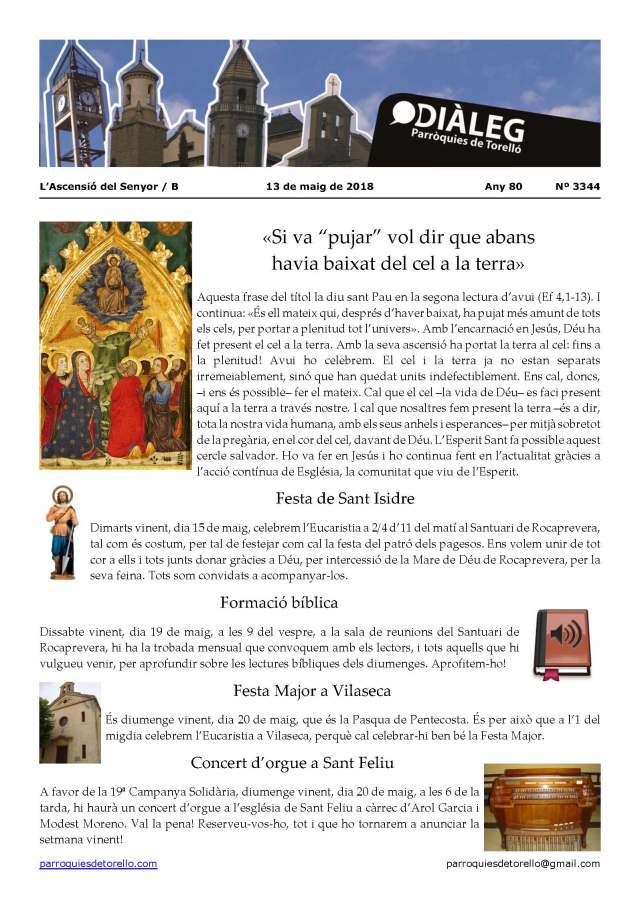 Aquest és el Diàleg del diumenge, dia 13 de maig del 2018, en imatge i en format pdf per si us el voleu descarregar.