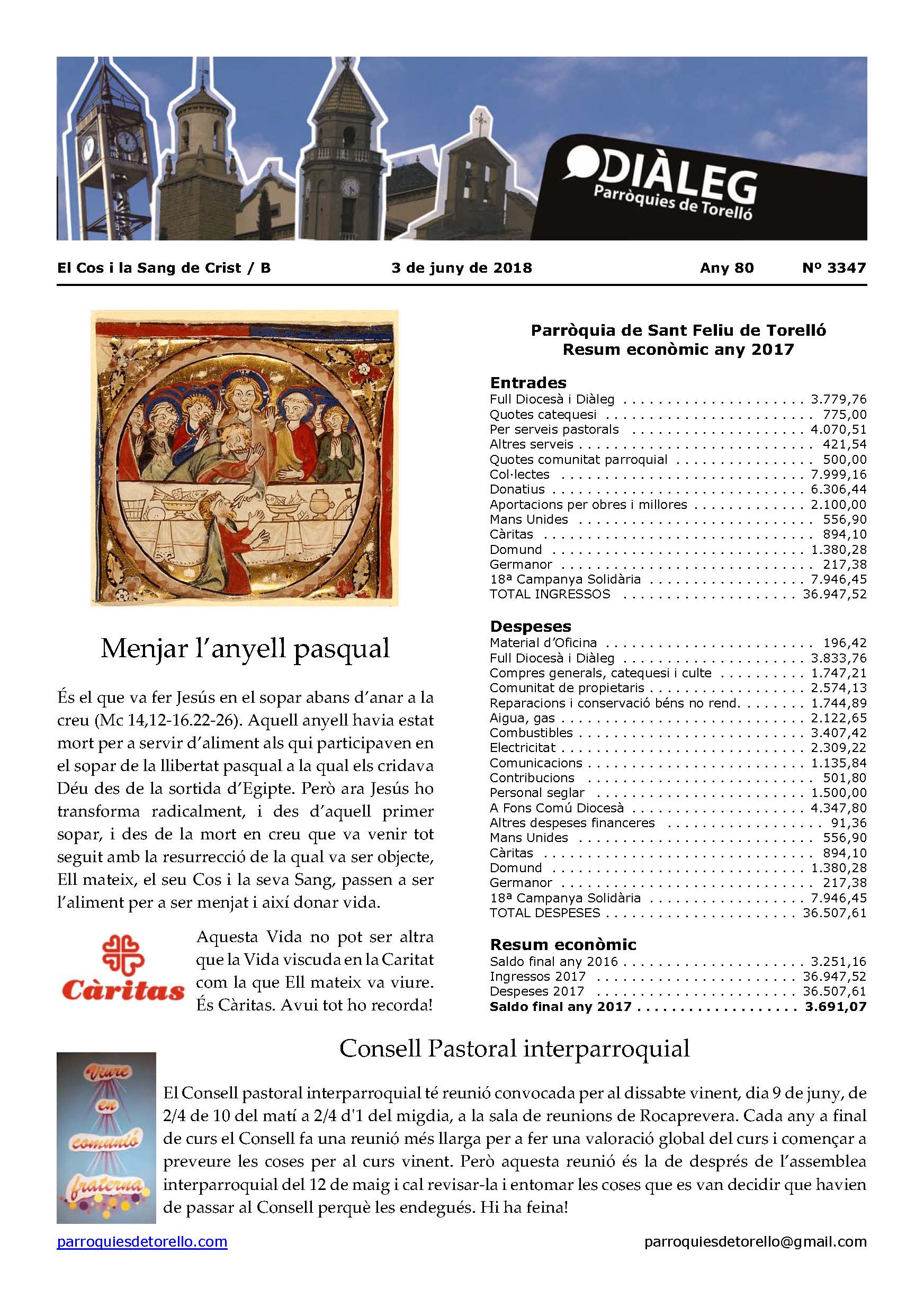 Aquest és el Diàleg del diumenge, dia 3 de juny del 2018, en imatge i en format pdf per si us el voleu descarregar.