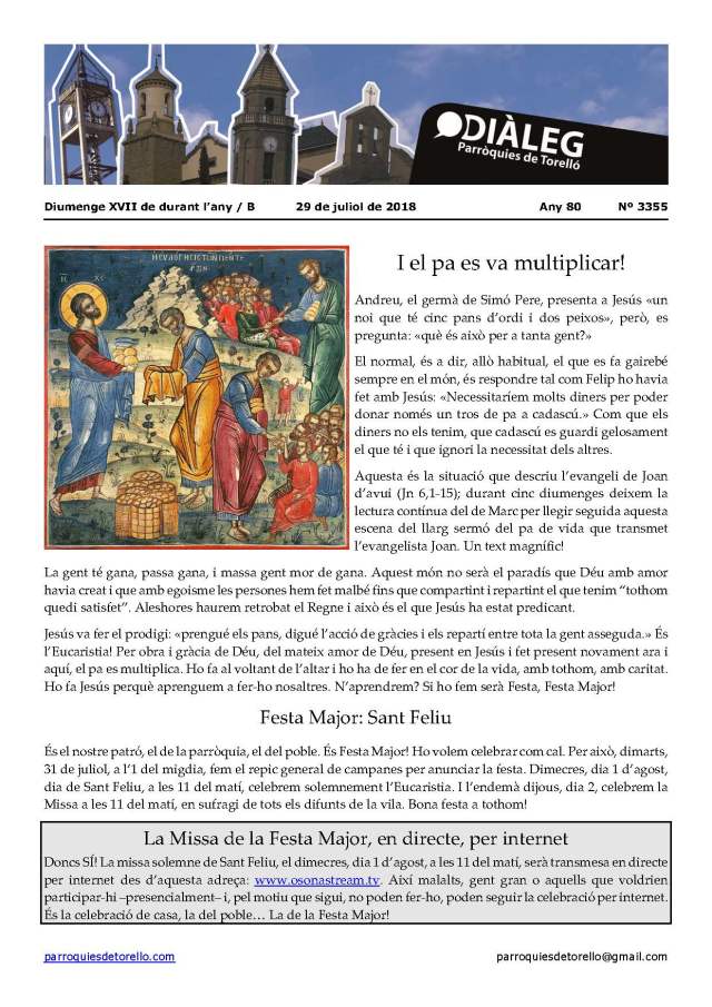 Aquest és el Diàleg del diumenge, dia 29 de juliol del 2018, en imatge i en format pdf per si us el voleu descarregar.