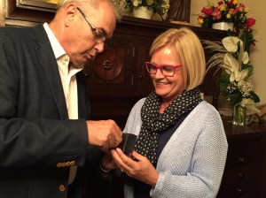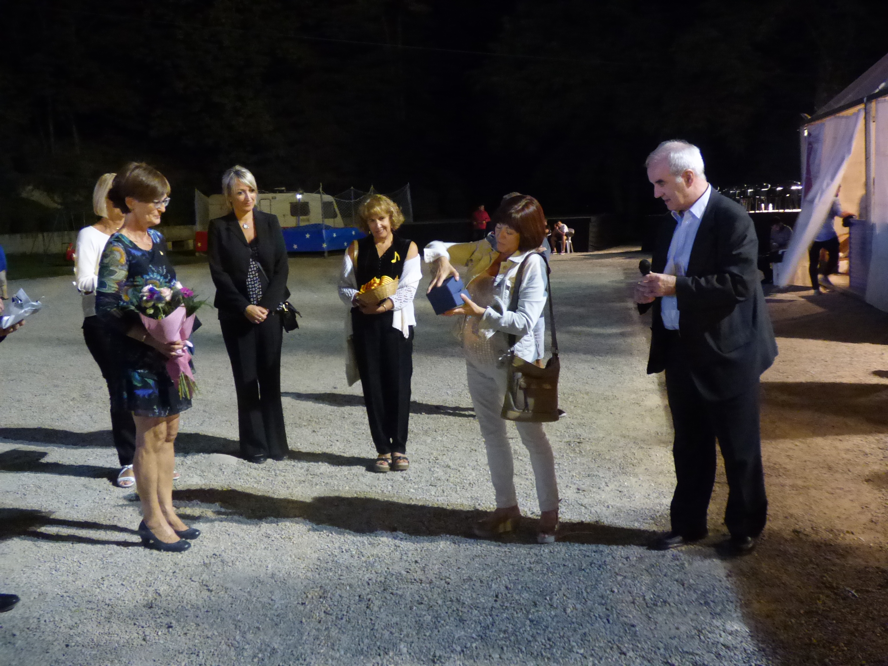 La Salve dóna pas a la inauguració de la tómbola. La Comissió va encarregar la inauguració d’aquest any amb un profund agraïment a la Lourdes Puig que n’ha estat membre una bona colla d’anys. Abans havia fet lliurament del pin de la comissió a l’Olga Rustarazo que la substitueix.