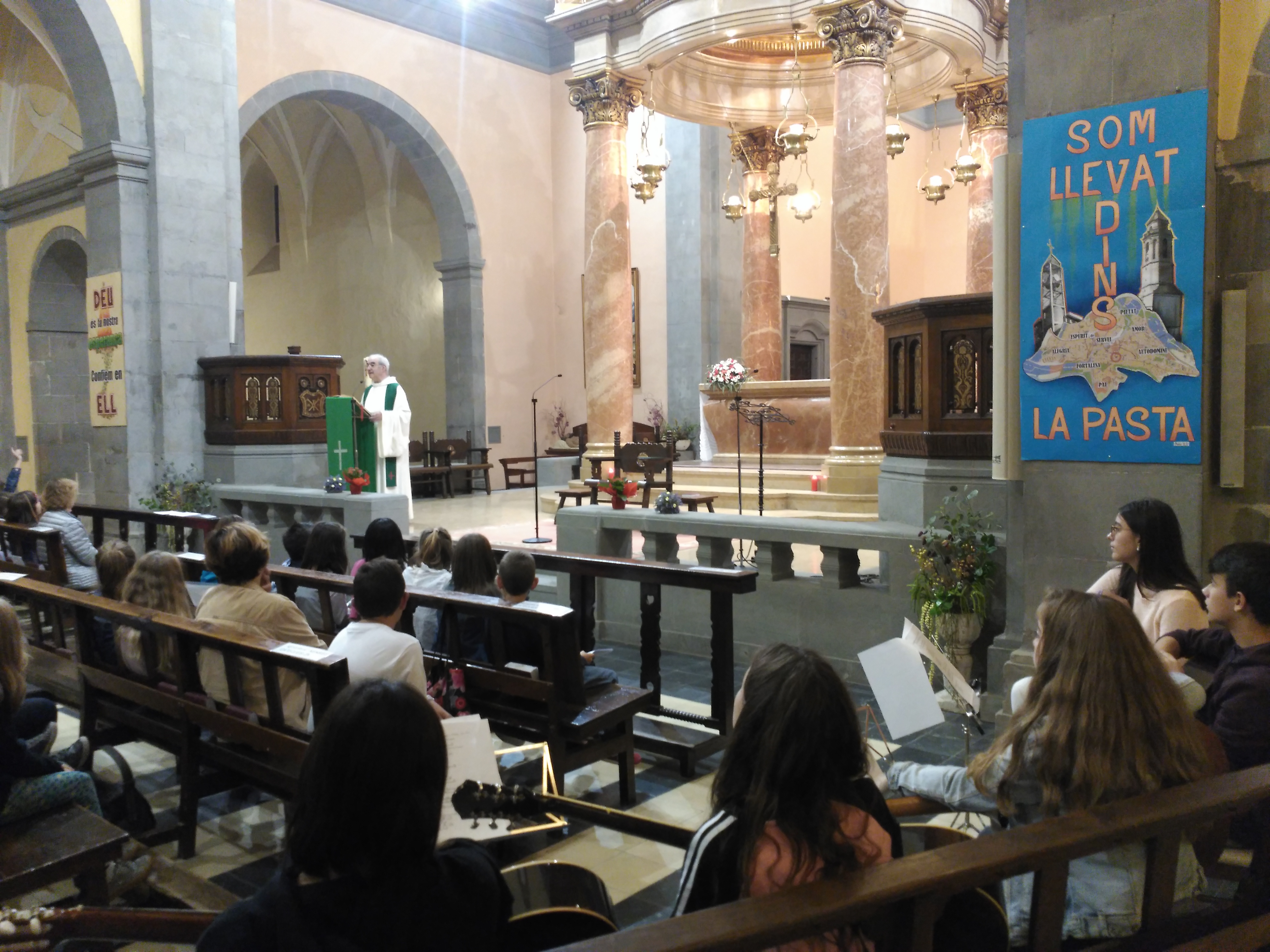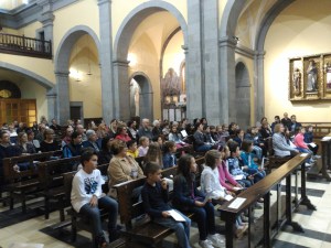 A les 8 del vespre hem anat a la Missa Familiar a Sant Feliu, juntament amb els nens i els pares de segon curs. La presentació dels espais, dels signes i de l’ordre de la missa ha estat el primer que s’ha fet en la celebració. I aquesta catequesi anirà continuant en les altres misses familiars.