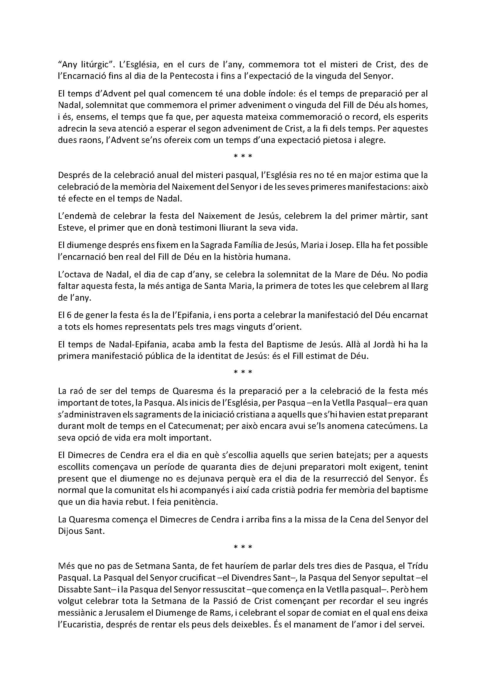 Hem estat fent amb els pares un tema de formació, amb el mossèn i les catequistes, tema que després els ha de servir per ajudar els nens i nenes en la comprensió i assimilació del que van fent a la catequesi.