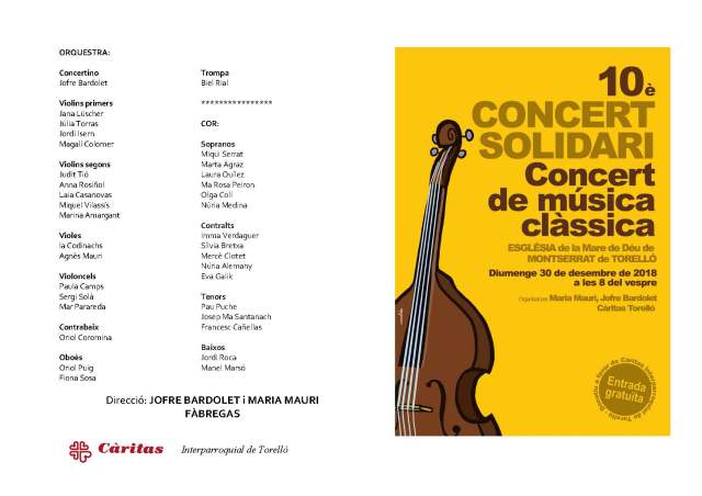 En una església de Montserrat plena a vessar, el diumenge, dia 30 de desmebre, a les 8 del vespre, hi ha hagut el 10è. Concert Solidari de música clàssica a favor de Càritas Interparroquial. Es va poder gaudir d’una música extraordinària, molt ben executada i amb una passió notable.