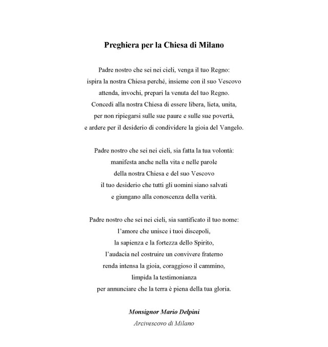 I es va cloure fent nostra una pregària que el bisbe Mario Delpini, de Milà, ha composat per a aquest moment històric que estem vivint. És aquesta, en original italià i versió catalana.