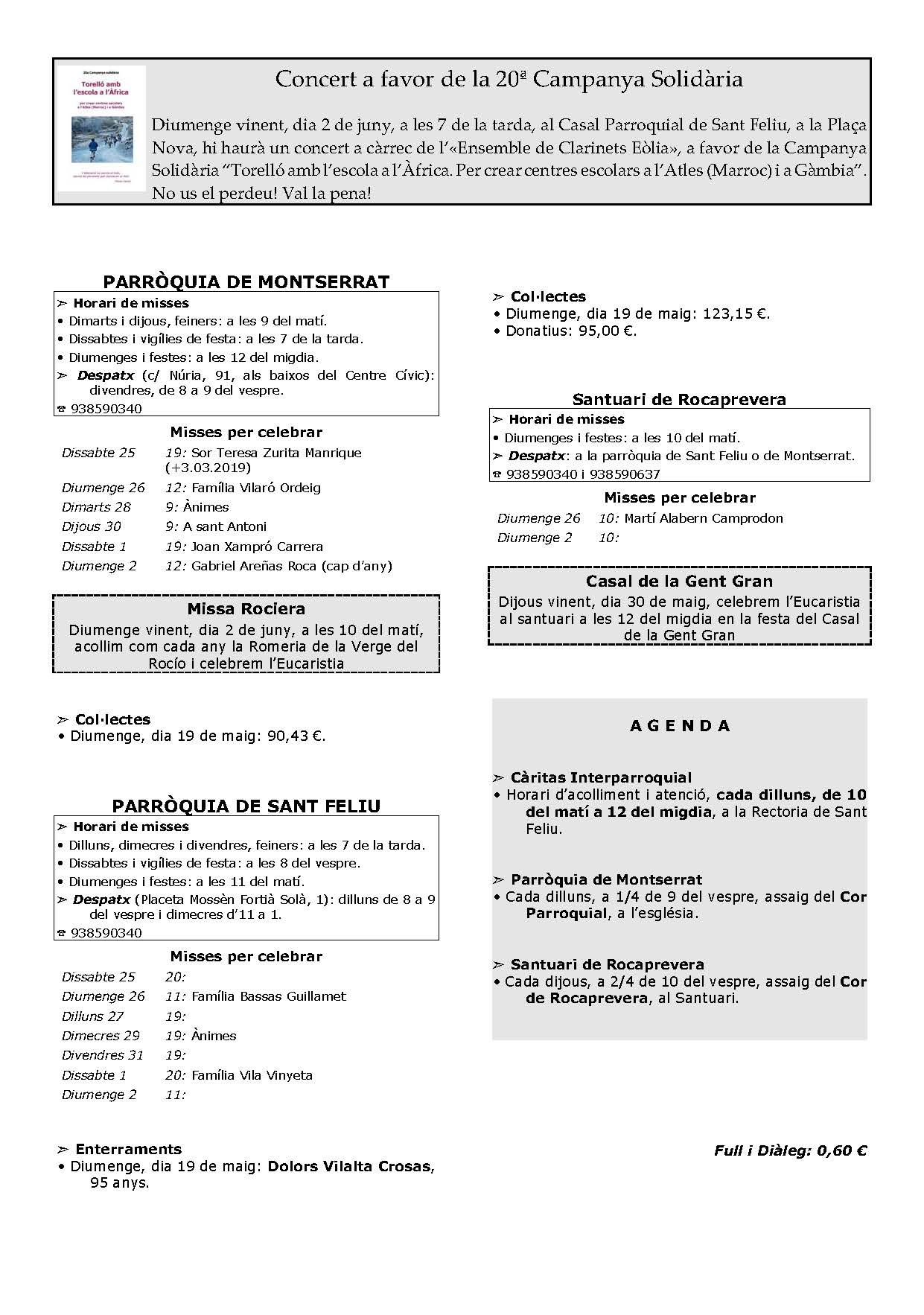 Aquest és el Diàleg del diumenge, dia 26 de maig del 2019, en imatge i en format pdf per si us el voleu descarregar.