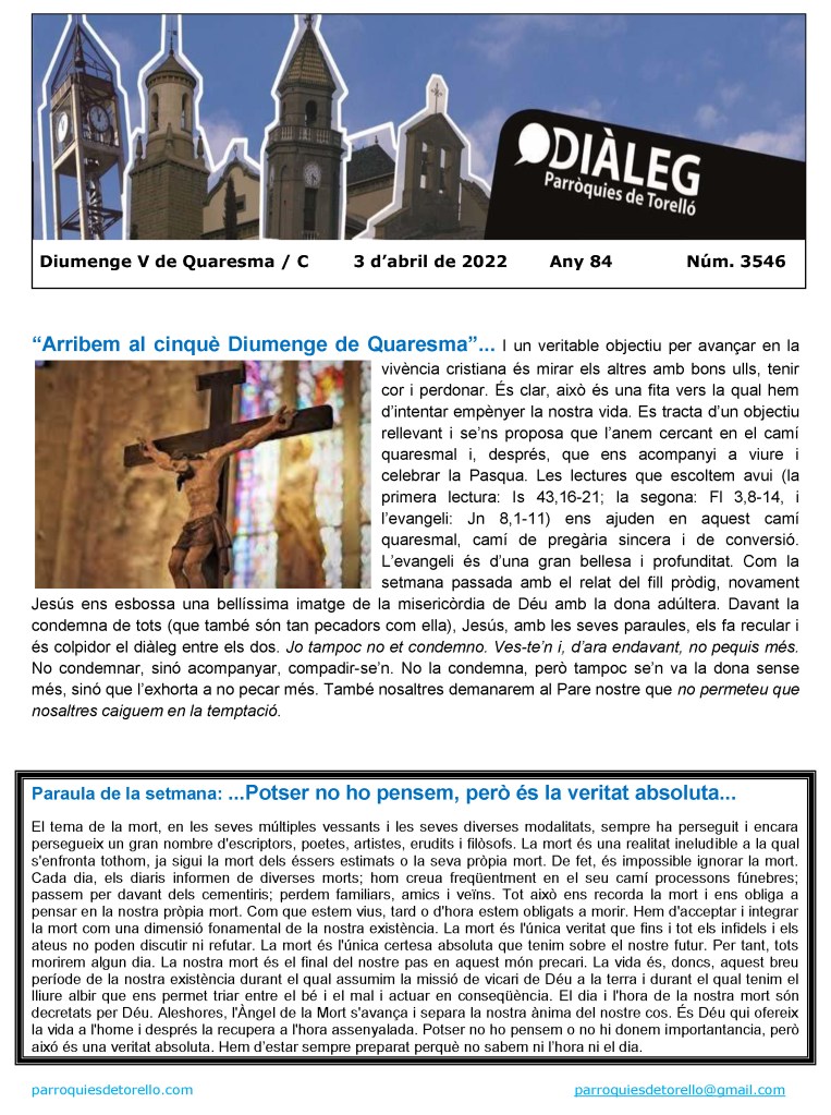 Aquest és el Diàleg del diumenge, dia 3 d’abril de 2022, en imatge i en format pdf per si us el voleu descarregar.
