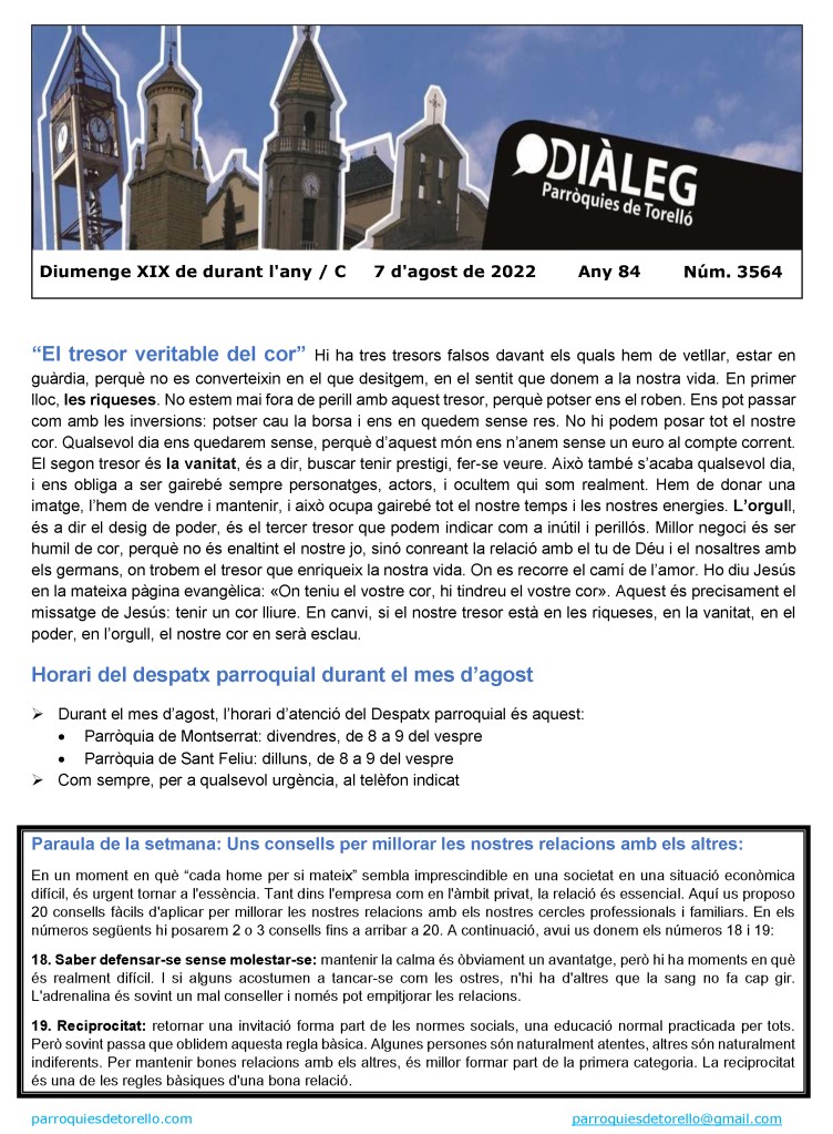 Aquest és el Diàleg del diumenge, dia 7 d’agost de 2022, en imatge i en format pdf per si us el voleu descarregar.