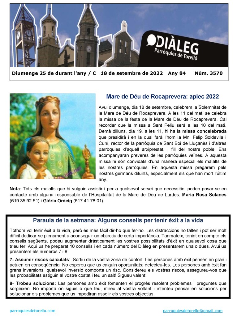 Aquest és el Diàleg del diumenge, dia 18 de setembre de 2022, en imatge i en format pdf per si us el voleu descarregar.