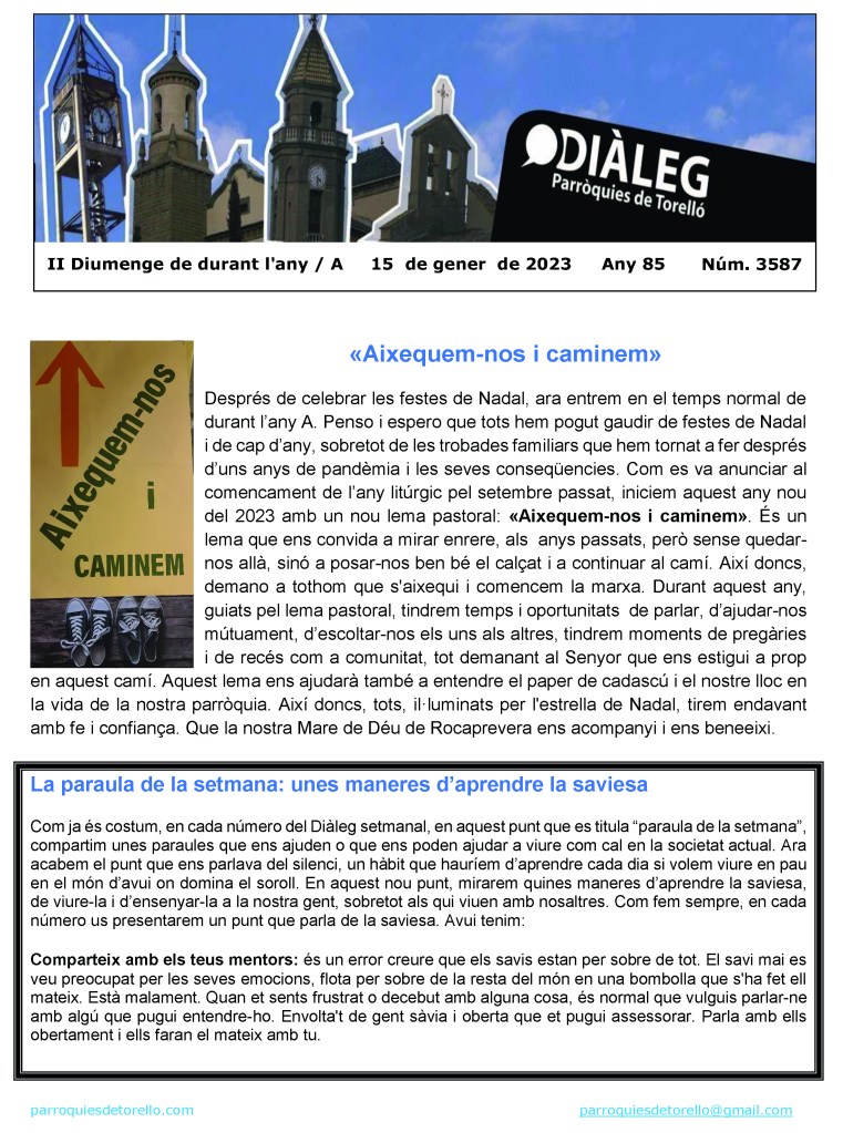 Aquest és el Diàleg del diumenge, dia 15 de gener de 2023, en imatge i en format pdf per si us el voleu descarregar.