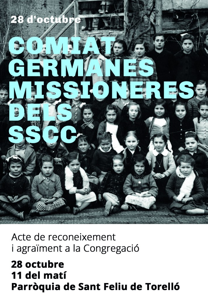 Aquest dissabte, 28 d’octubre, a les 11 del matí, es farà a l’església de Sant Feliu una missa d’acció de gràcies a la congregació de les Germanes Missioneres dels Sagrats Cors. Serà un acte d’agraïment i de reconeixement a les germanes i a la congregació que durant 84 anys han estat un referent en la tasca educativa i social de l’escola i del poble.