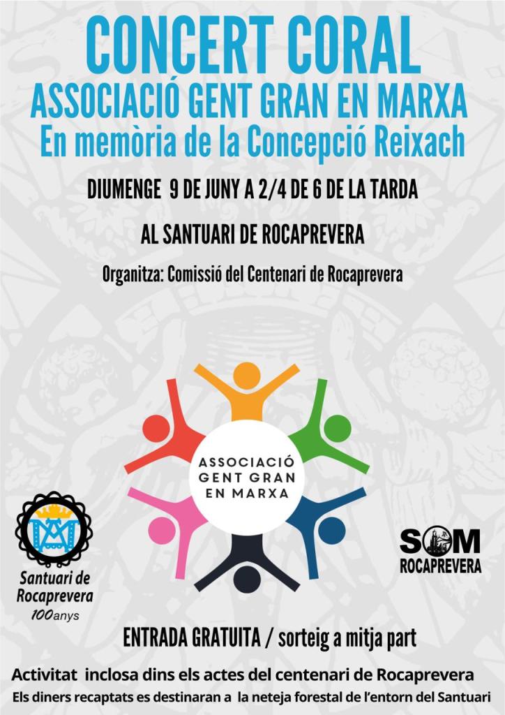 El concert es farà a 2/4 de 6 de la tarda al santuari de Rocaprevera, dins el marc dels actes del centenari. La coral, que ja va actuar al santuari a l’abril, en aquesta ocasió, ha convidat a la coral Cervià i al cor del santuari a cantar Hallelujah, de Leonard Cohen en honor a Reixach, que cantava a les tres formacions.