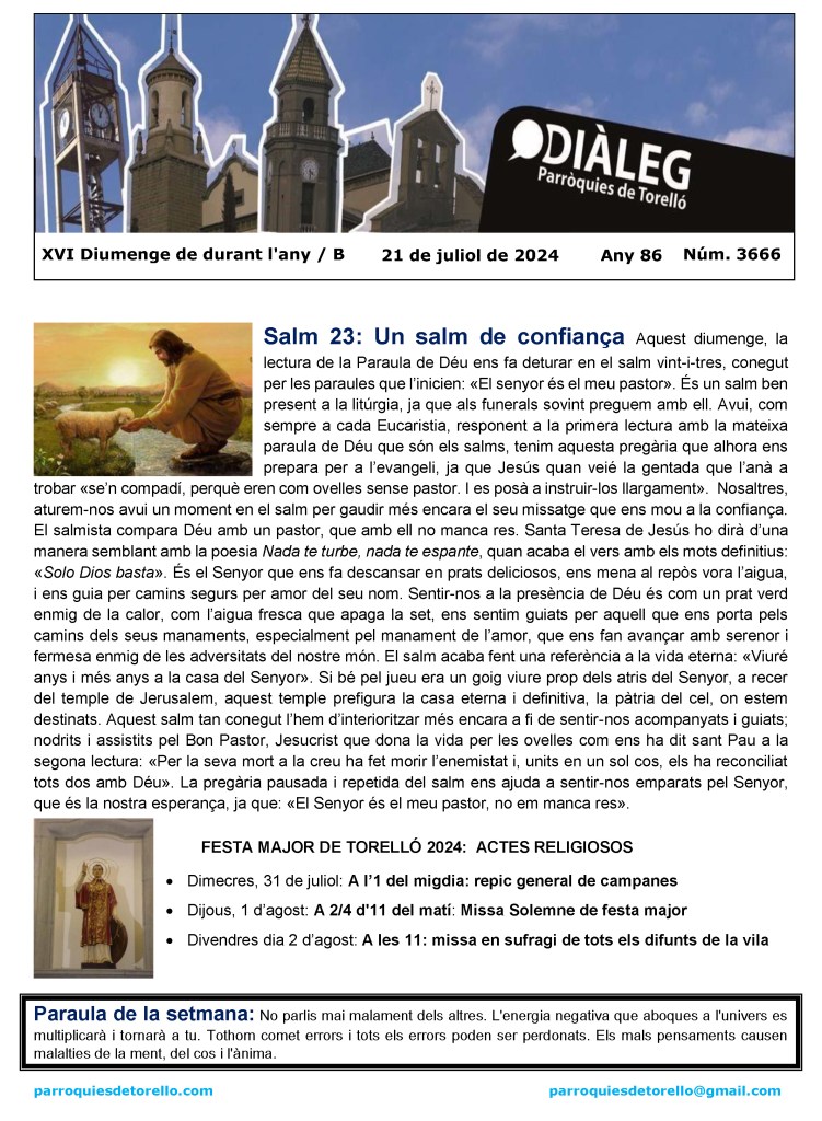 «No tinguis por, petit ramat» (Lc 12,32)
