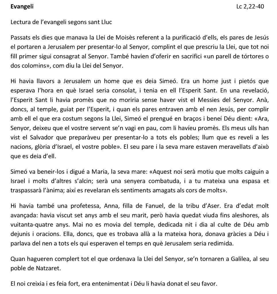 «No tinguis por, petit ramat» (Lc 12,32)