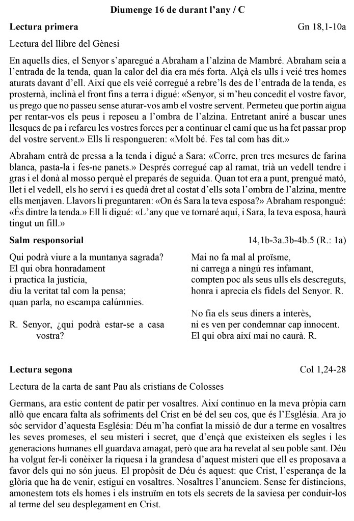 «No tinguis por, petit ramat» (Lc 12,32)