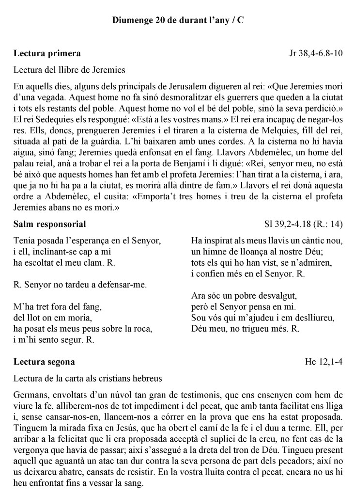 «No tinguis por, petit ramat» (Lc 12,32)