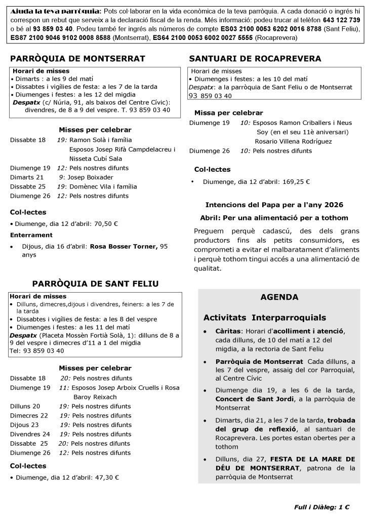 Aquest és el Diàleg del diumenge, dia 19 d’abril de 2026.