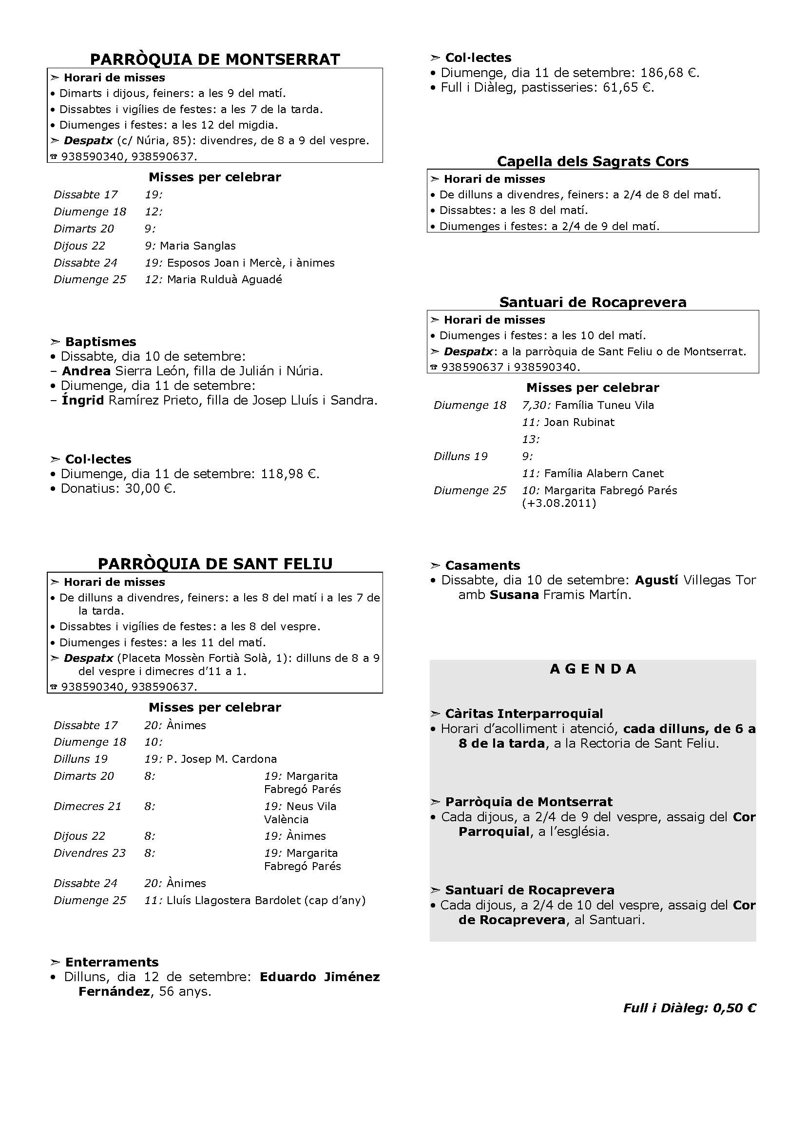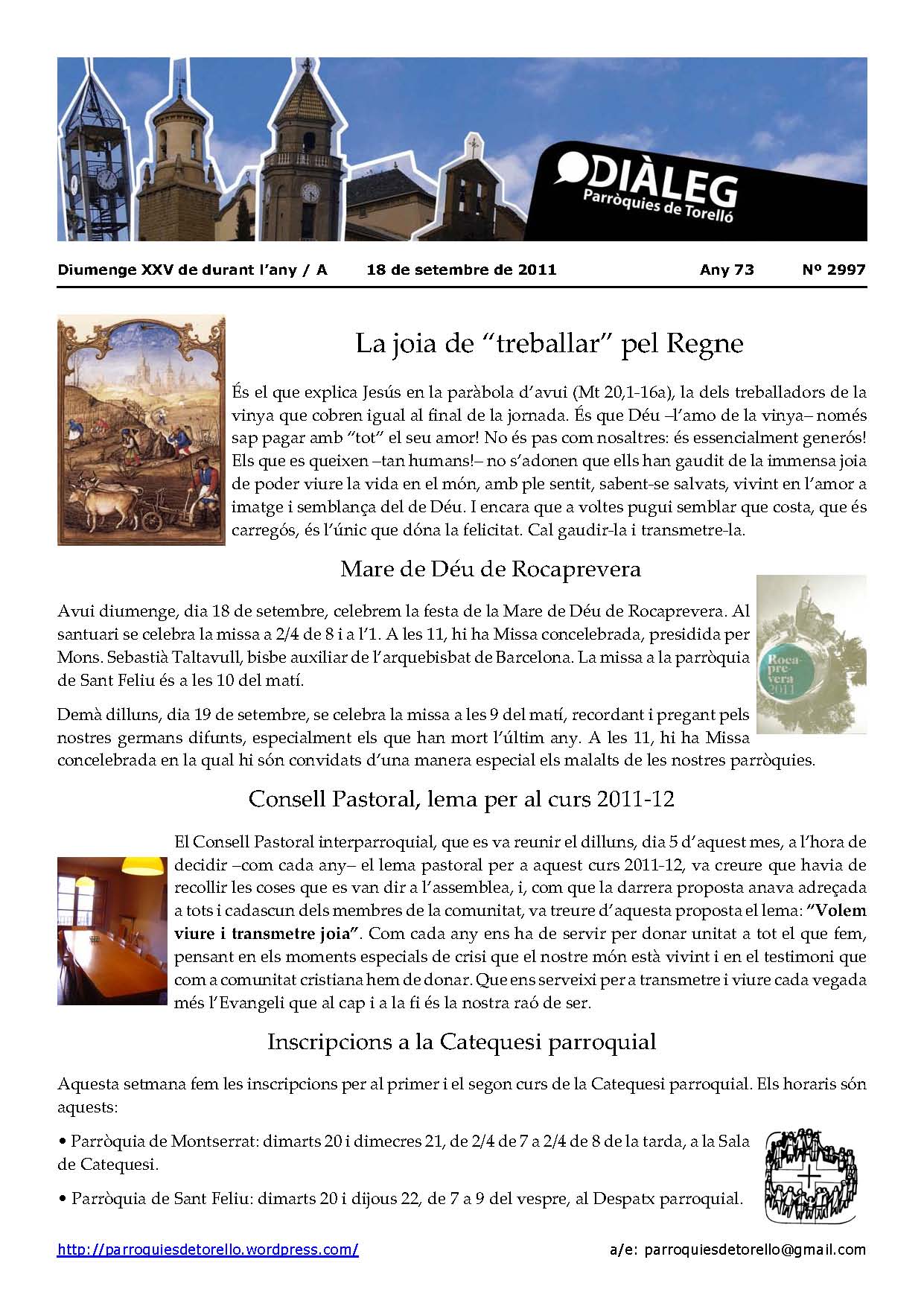 Aquest és el Diàleg del diumenge 18 de setembre del 2011, festa de la Mare de Déu de Rocaprevera.