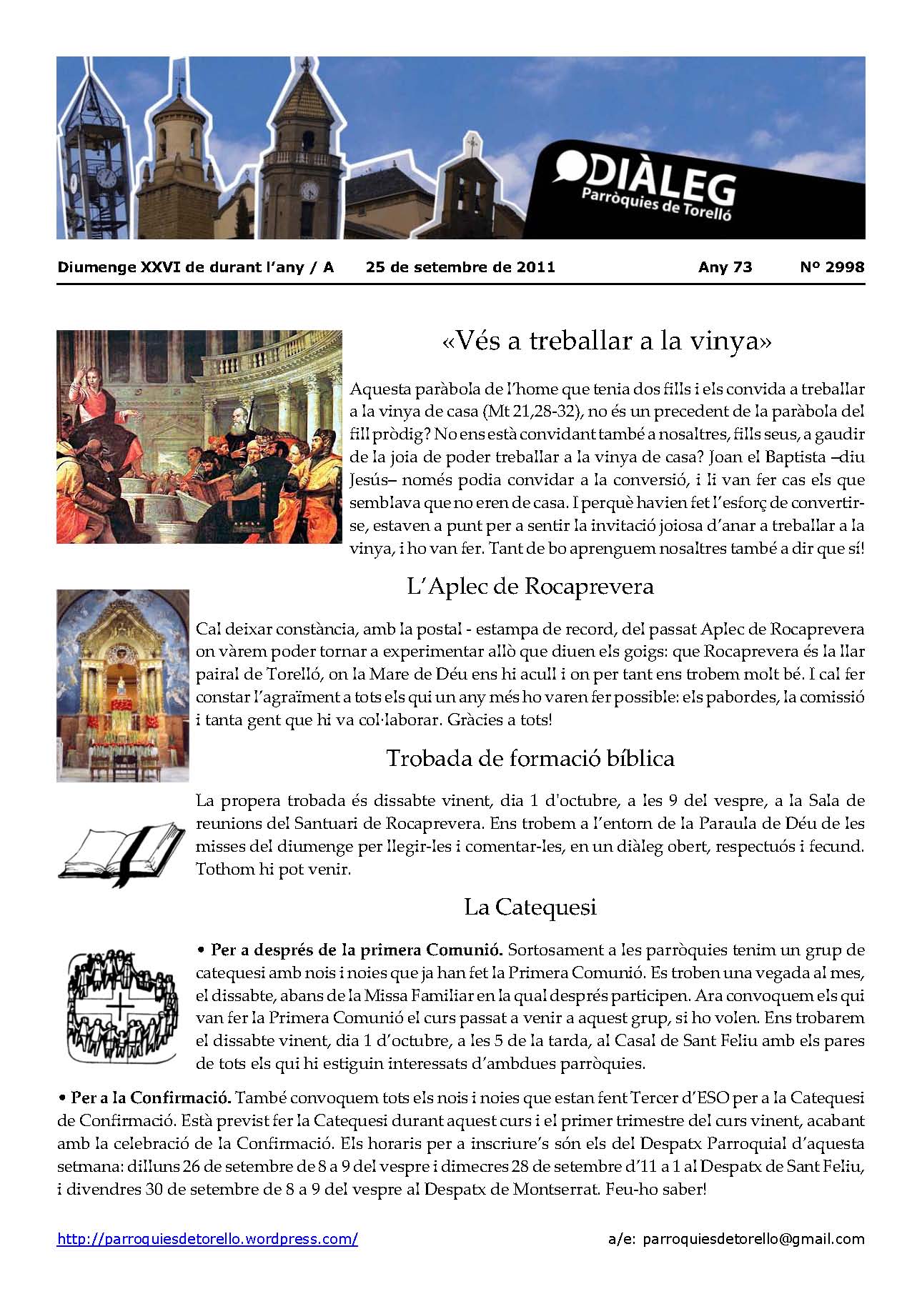 Aquest és el Diàleg del diumenge, dia 25 de setembre del 2011, en pdf per a poder-lo descarregar i en imatge.