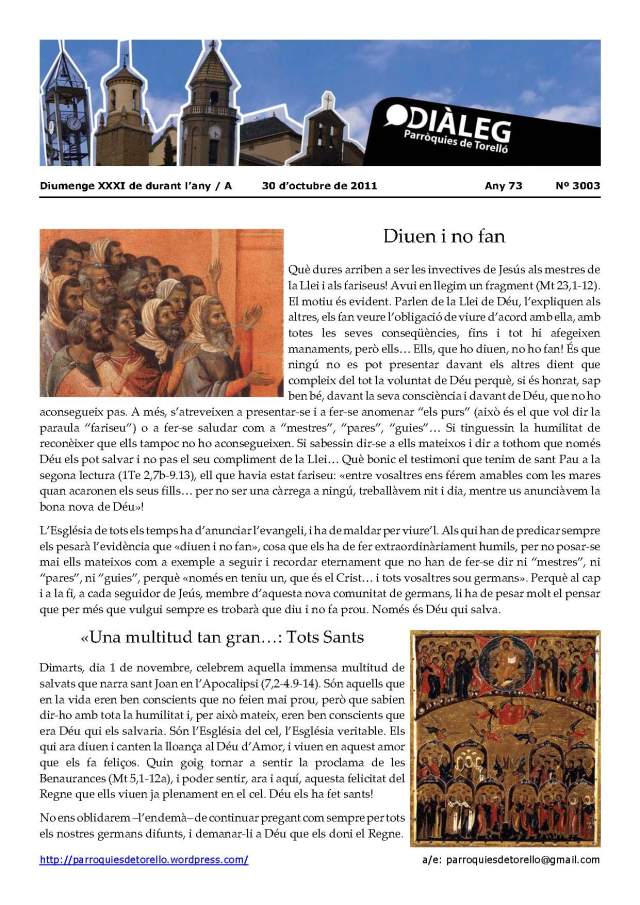 Aquest és el Diàleg del diumenge, 30 d’octubre del 2011. Us el podeu descarregar en l’enllaç, en format pdf. També el teniu en imatge.
