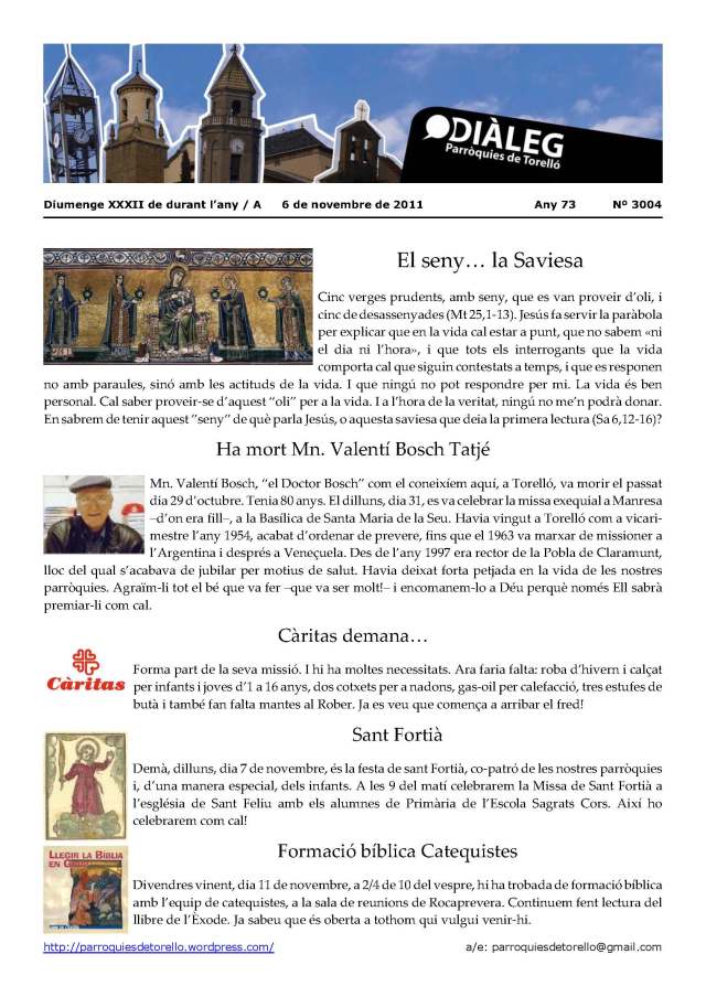 Aquest és el Diàleg del diumenge, 6 de novembre del 2011. Us el podeu descarregar en l’enllaç, en format pdf. També el teniu en imatge.