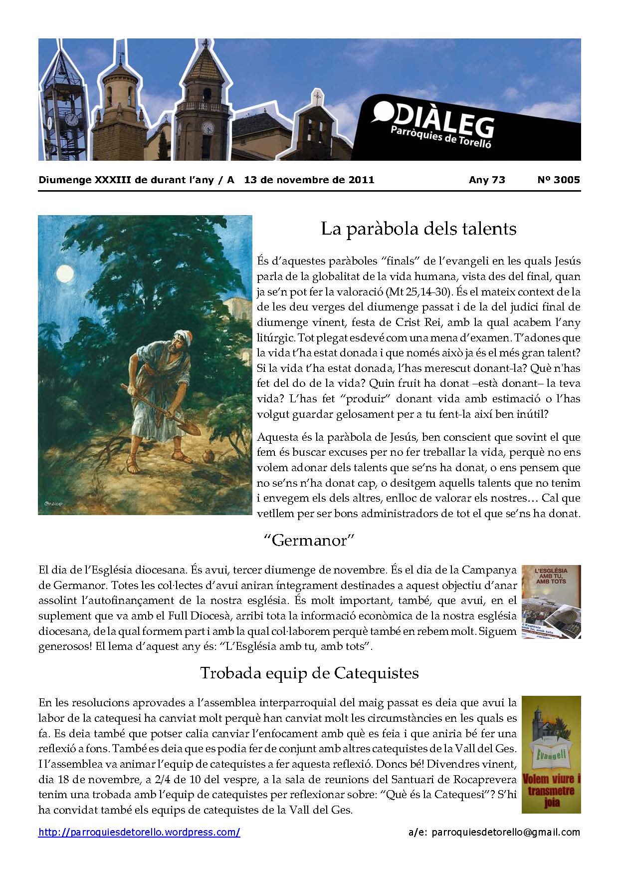 Aquí teniu el Diàleg del diumenge, 13 de novembre del 2011. Us el podeu descarregar en l’enllaç, en format pdf. També el teniu en imatge.