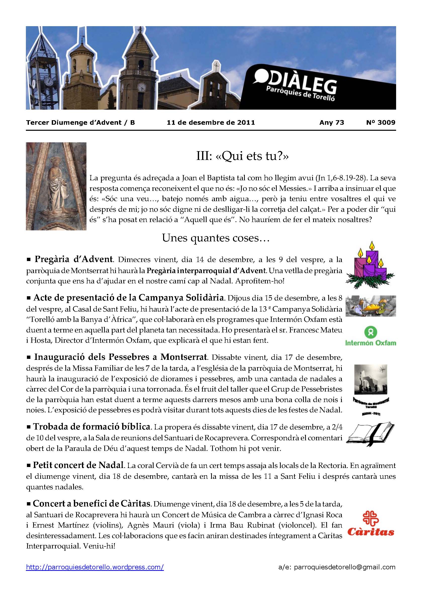 Aquest és el Diàleg del diumenge, dia 11 de desembre de 2011, en imatge i en un enllaç pdf perquè us el pugueu descarregar.