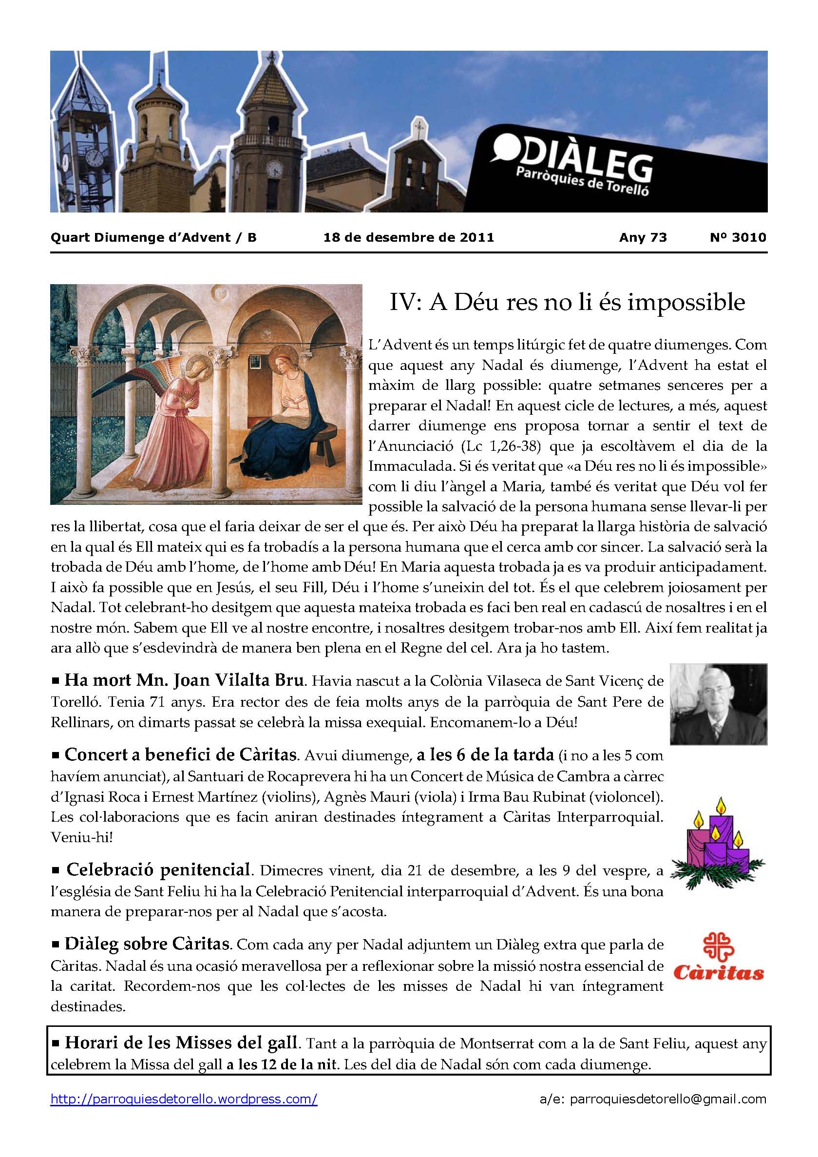 Aquest és el Diàleg del diumenge, dia 18 de desembre de 2011, en imatge i en un enllaç pdf perqu us el pugueu descarregar.