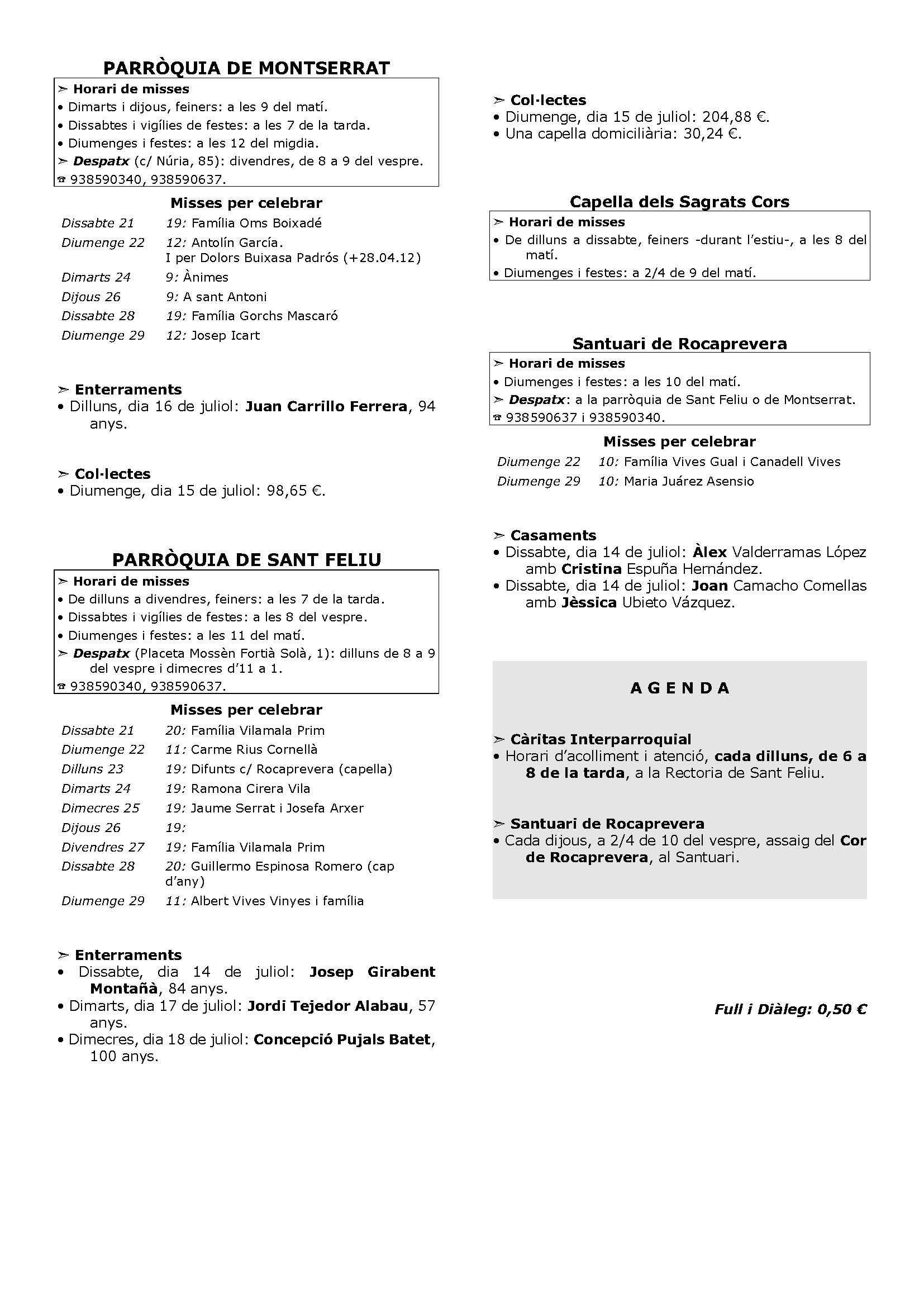- Missa del Gall a Sant Feliu a les 19h00 24 Desembre 2025
